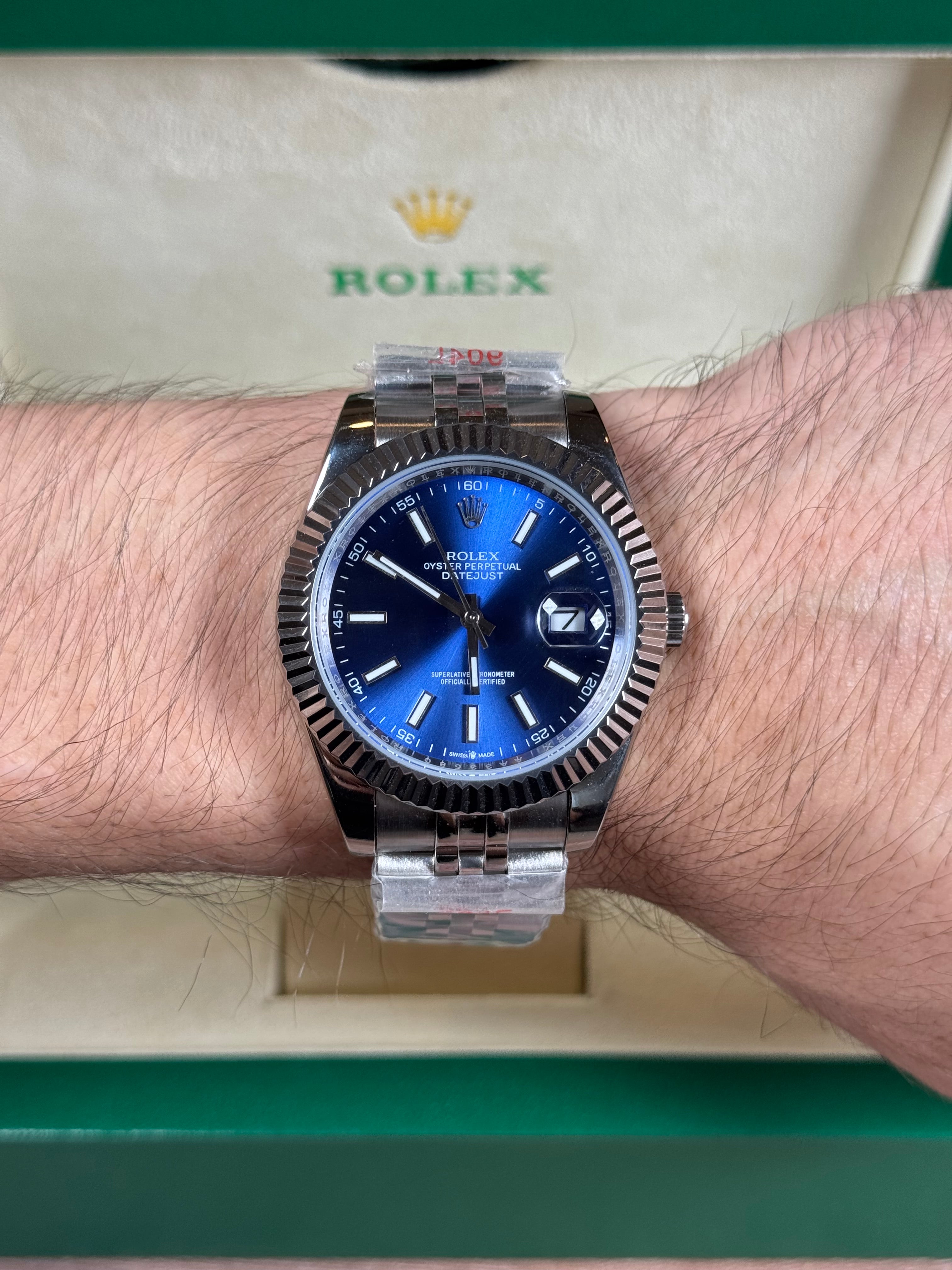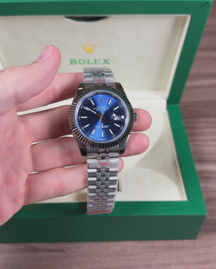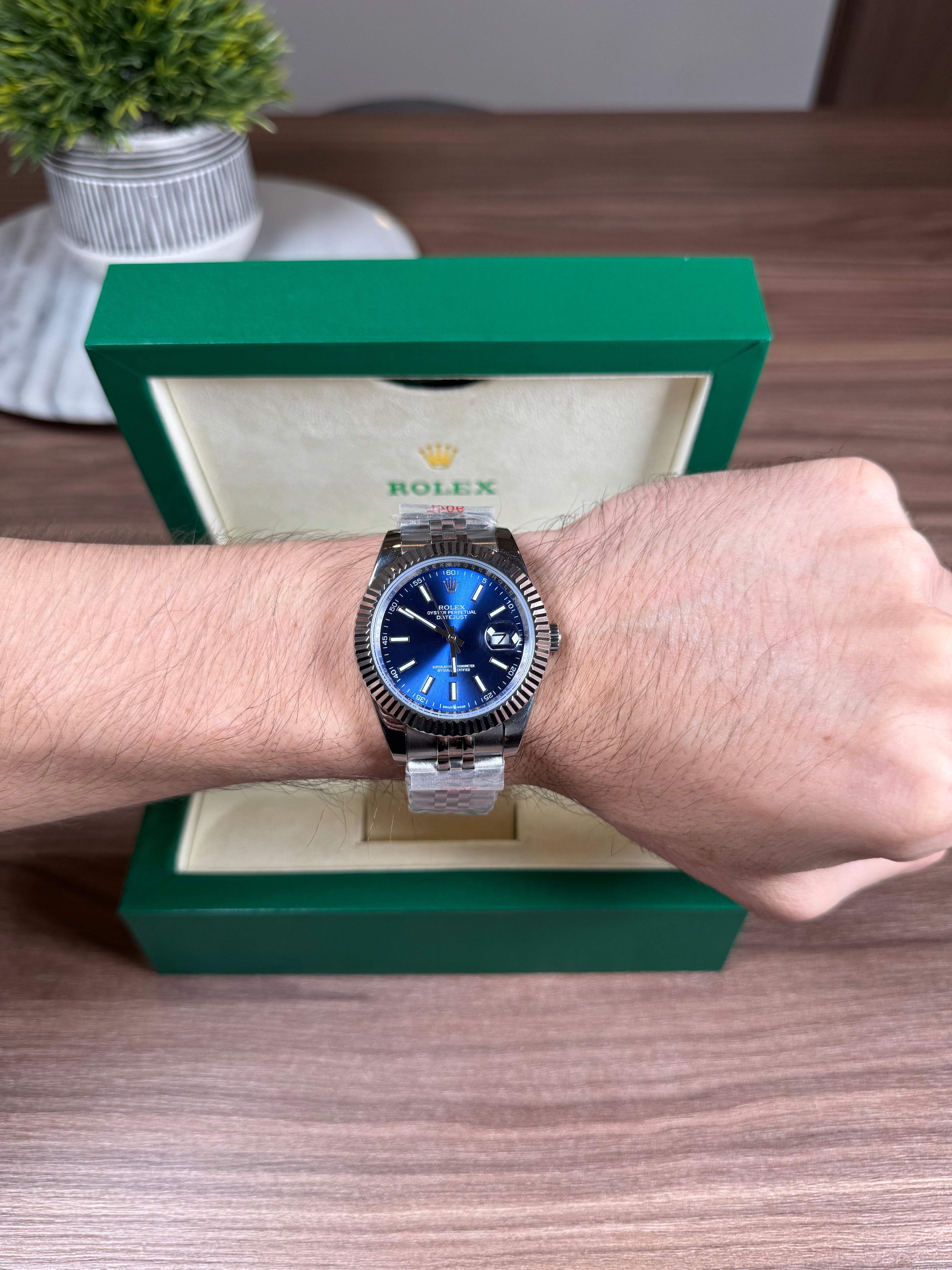 ROLEX DATEJUST PLATEADO - FONDO AZUL