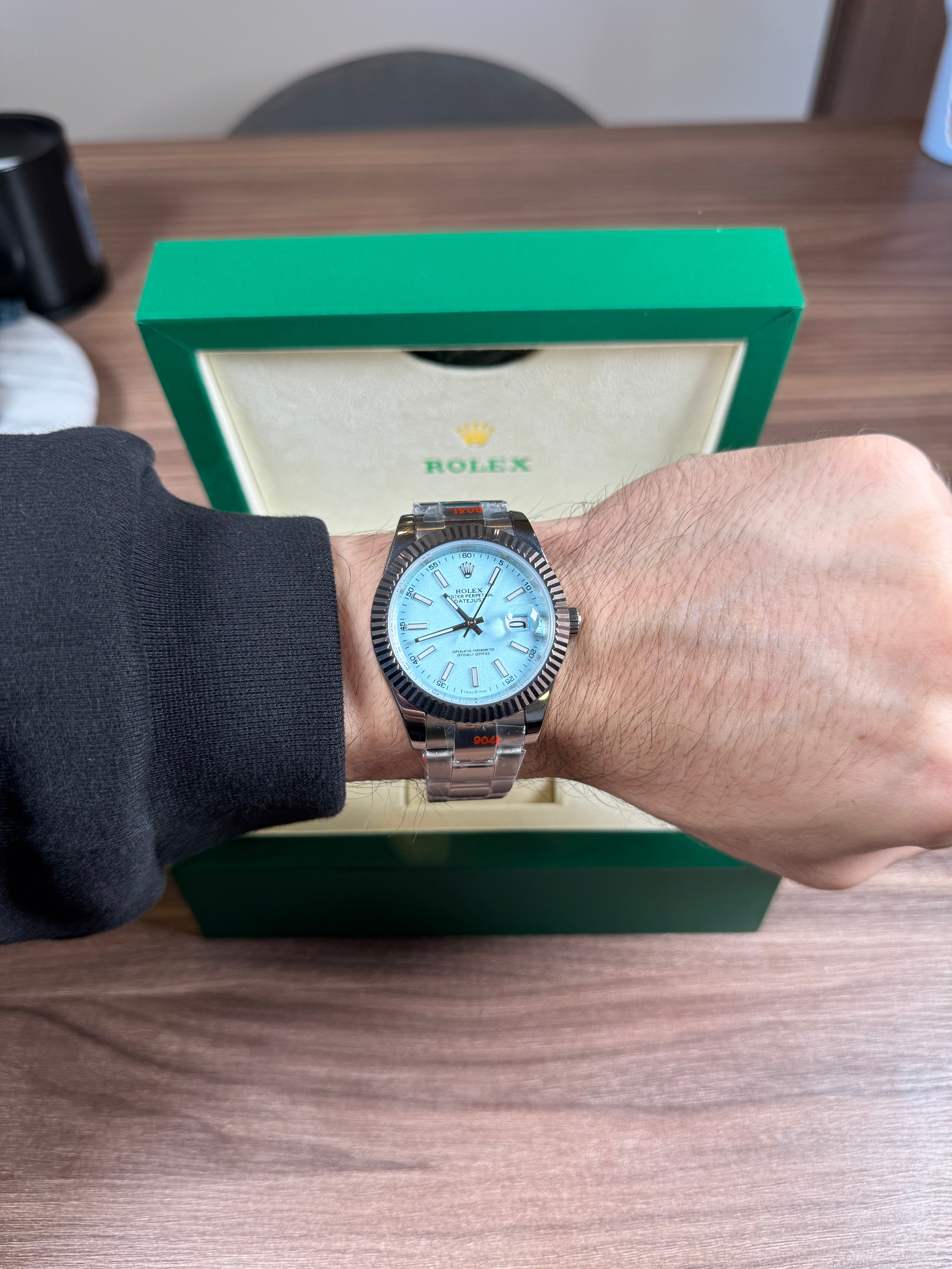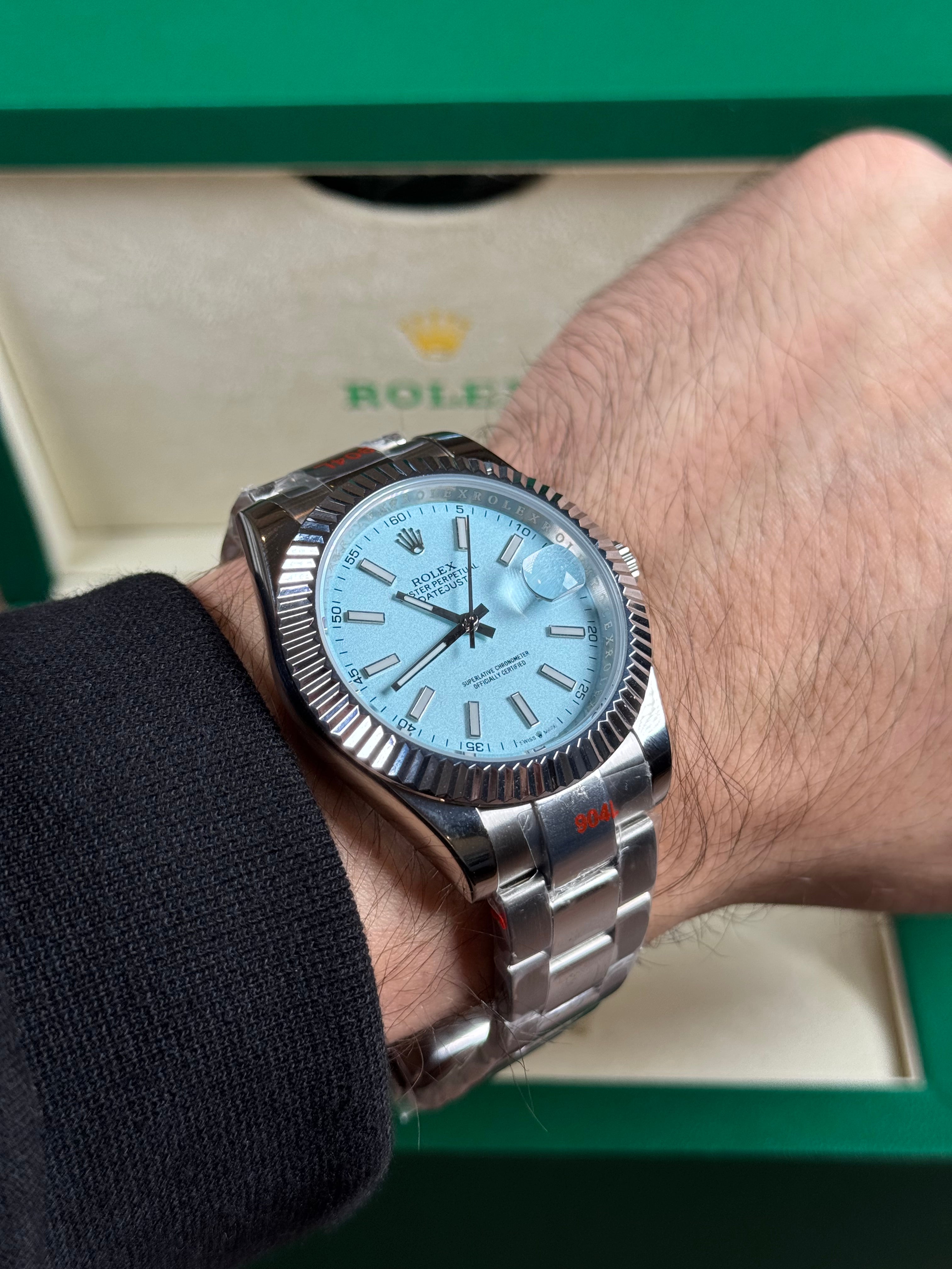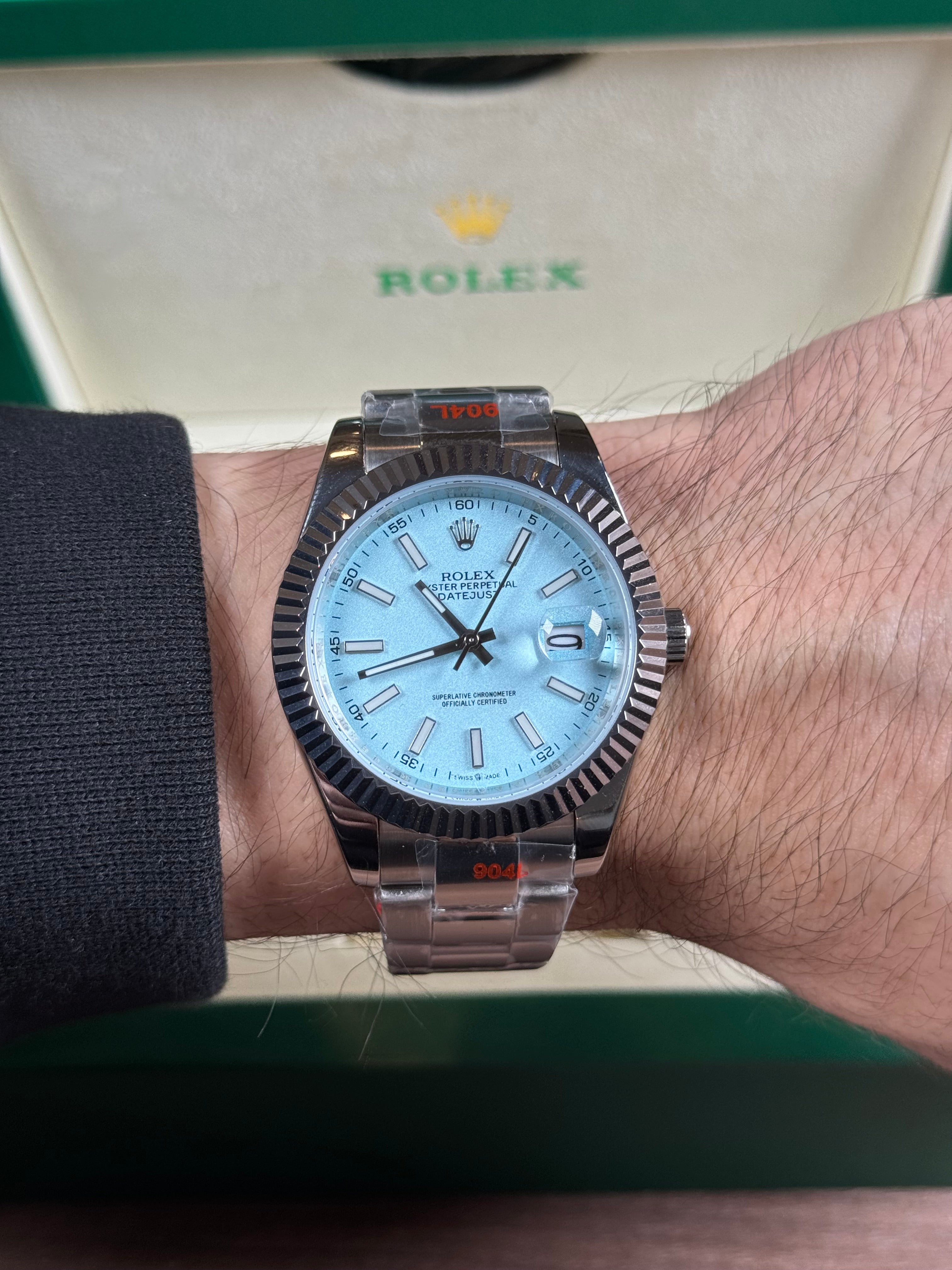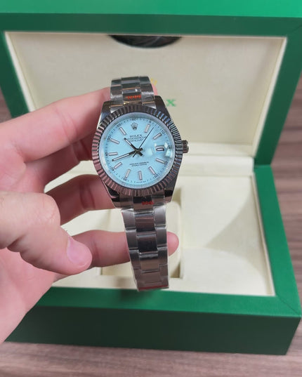 ROLEX DATEJUST PLATEADO - FONDO AZUL CLARO