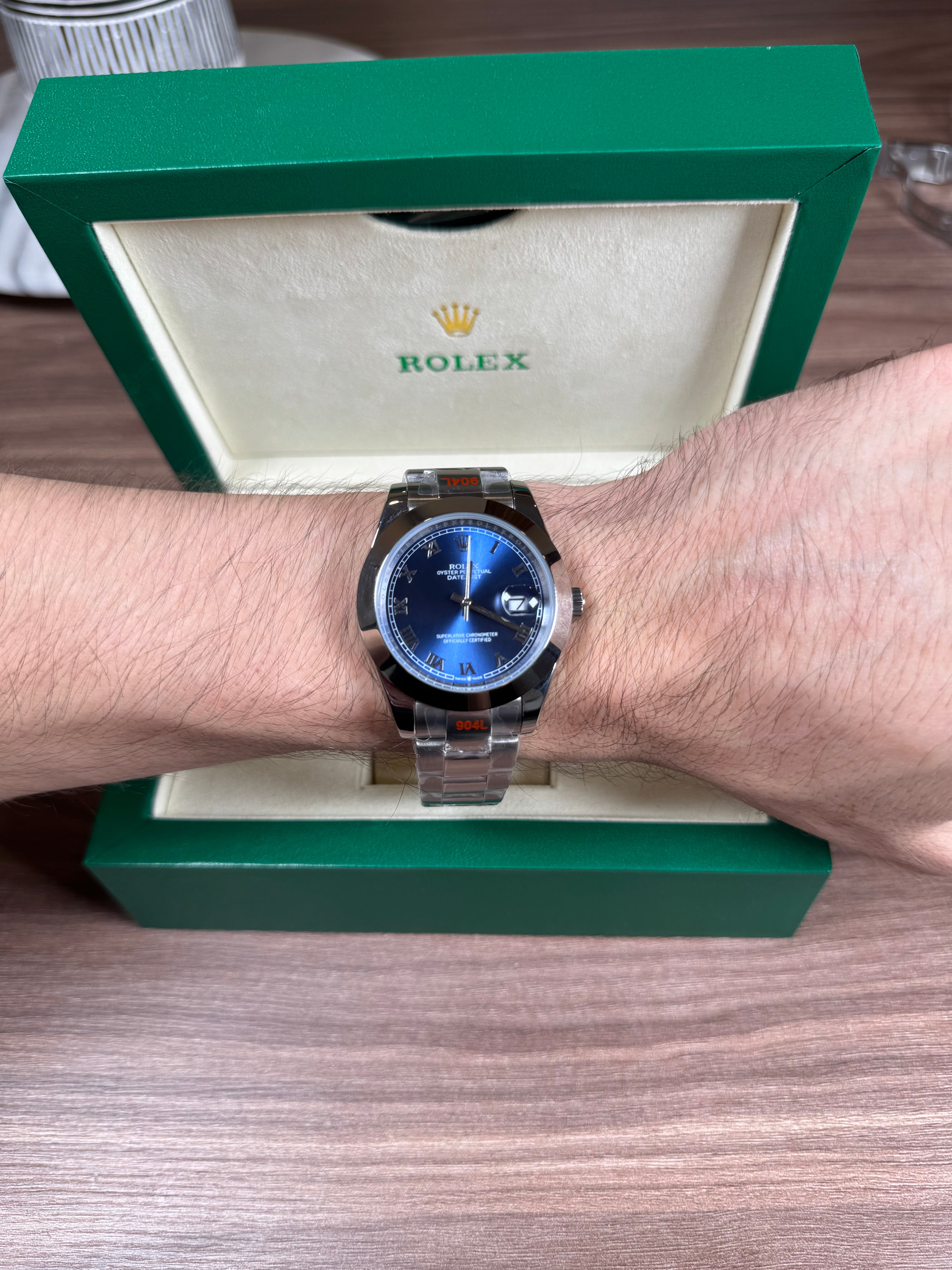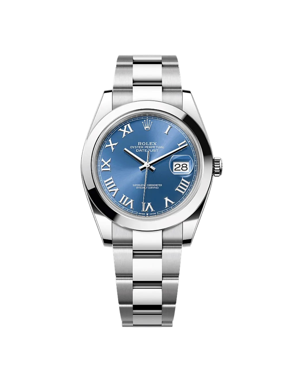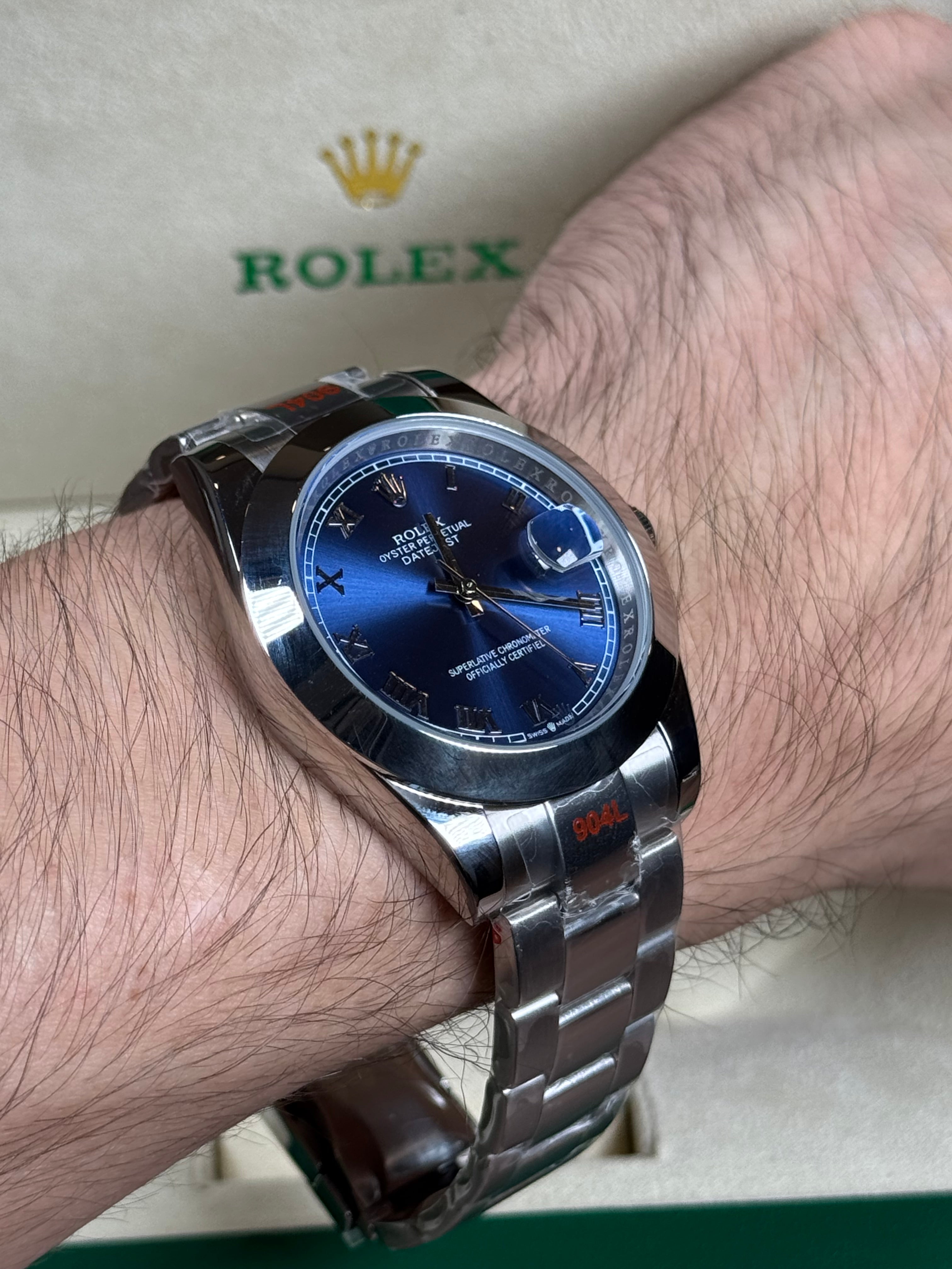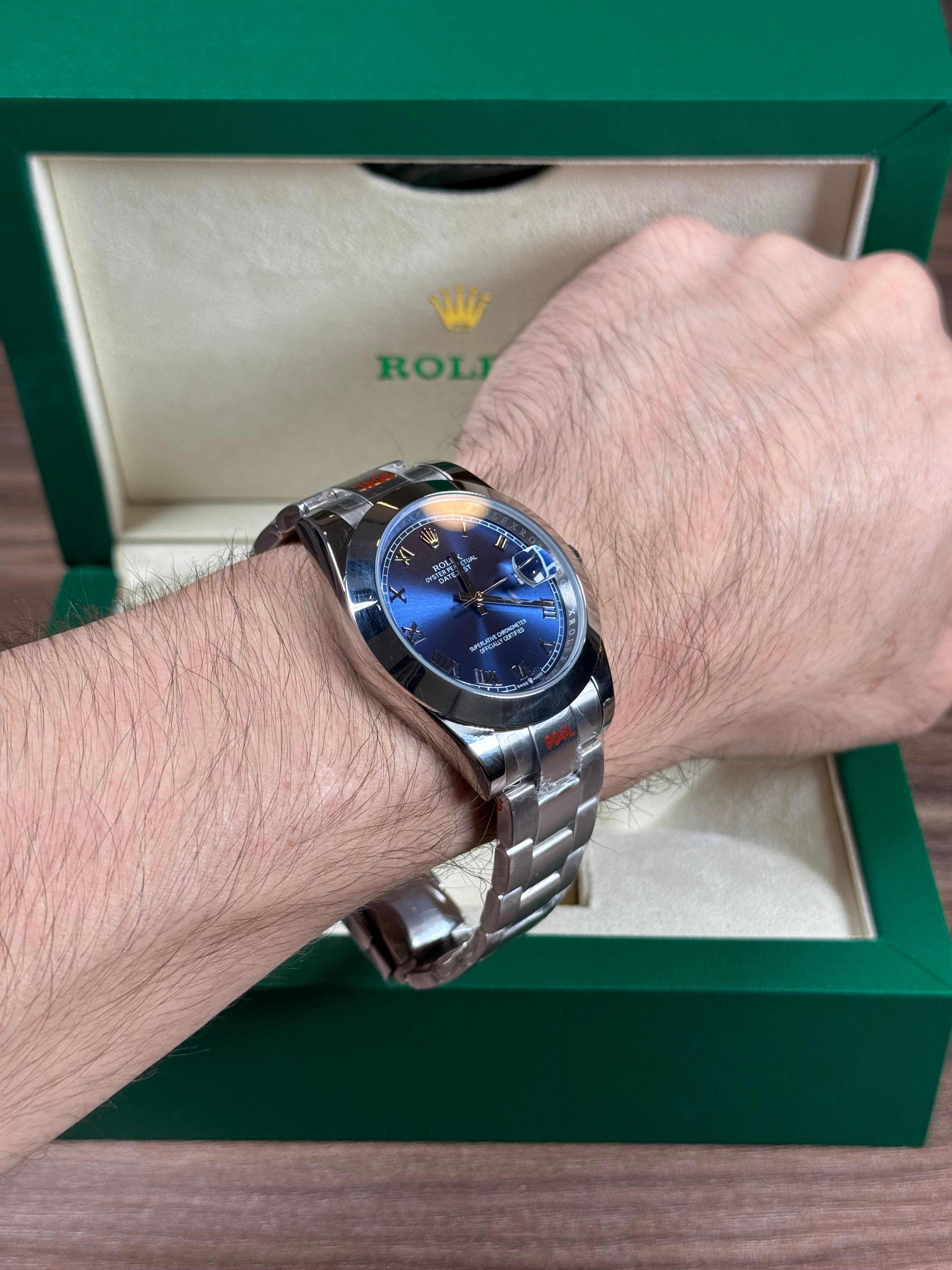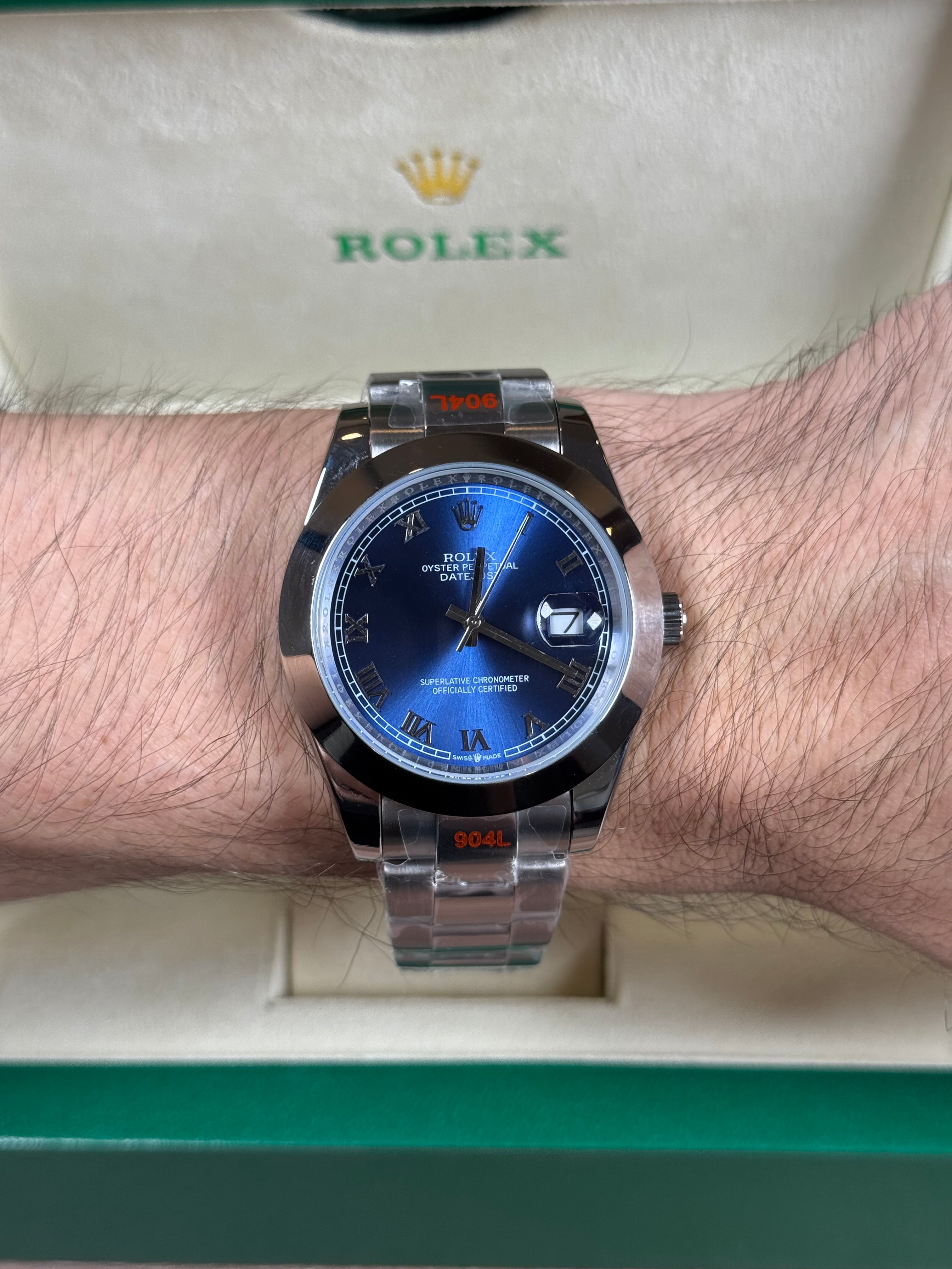 ROLEX DATEJUST PLATEADO - FONDO AZUL ROMANO OYSTER