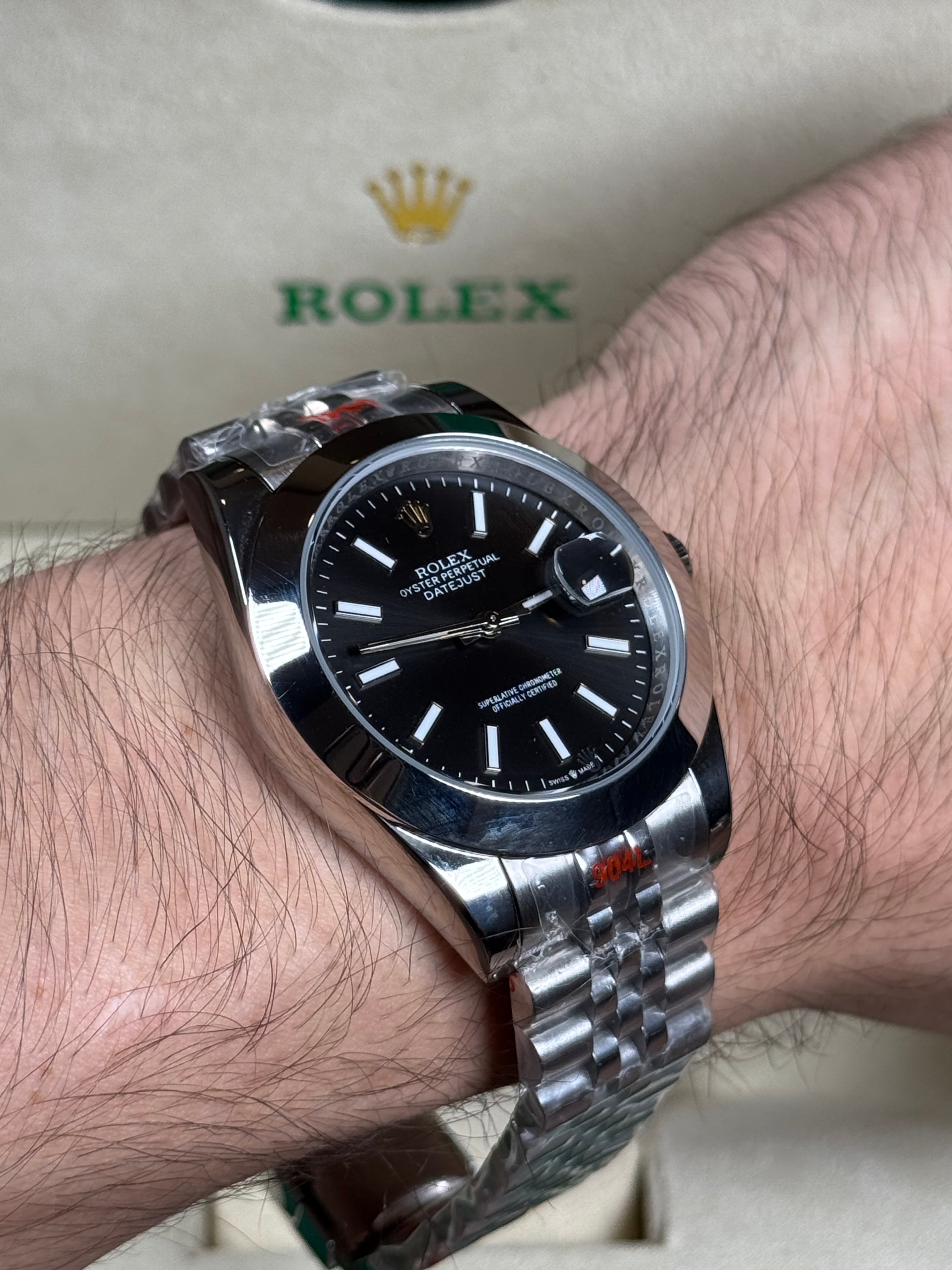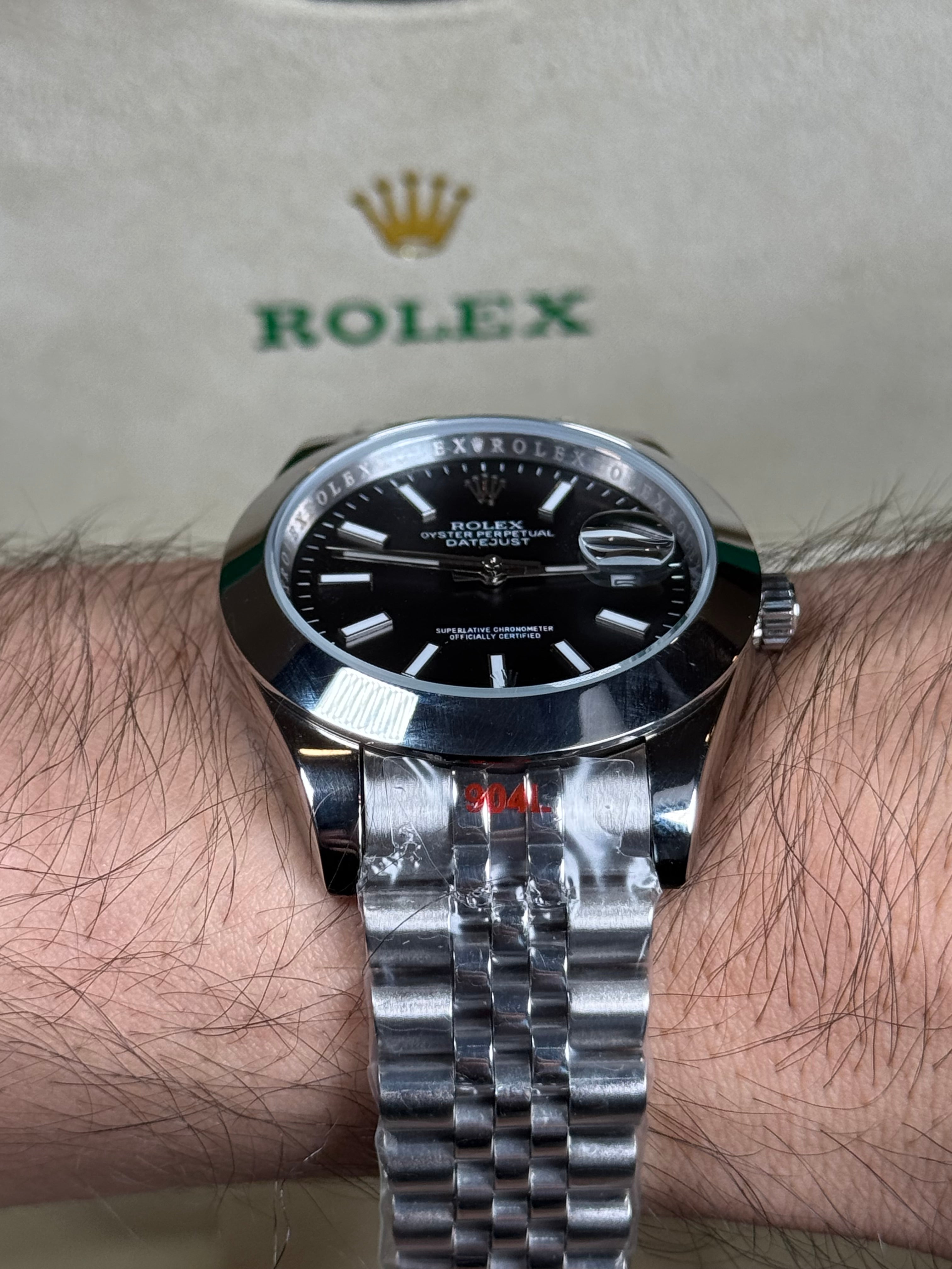 ROLEX DATEJUST PLATEADO - FONDO NEGRO OYSTER