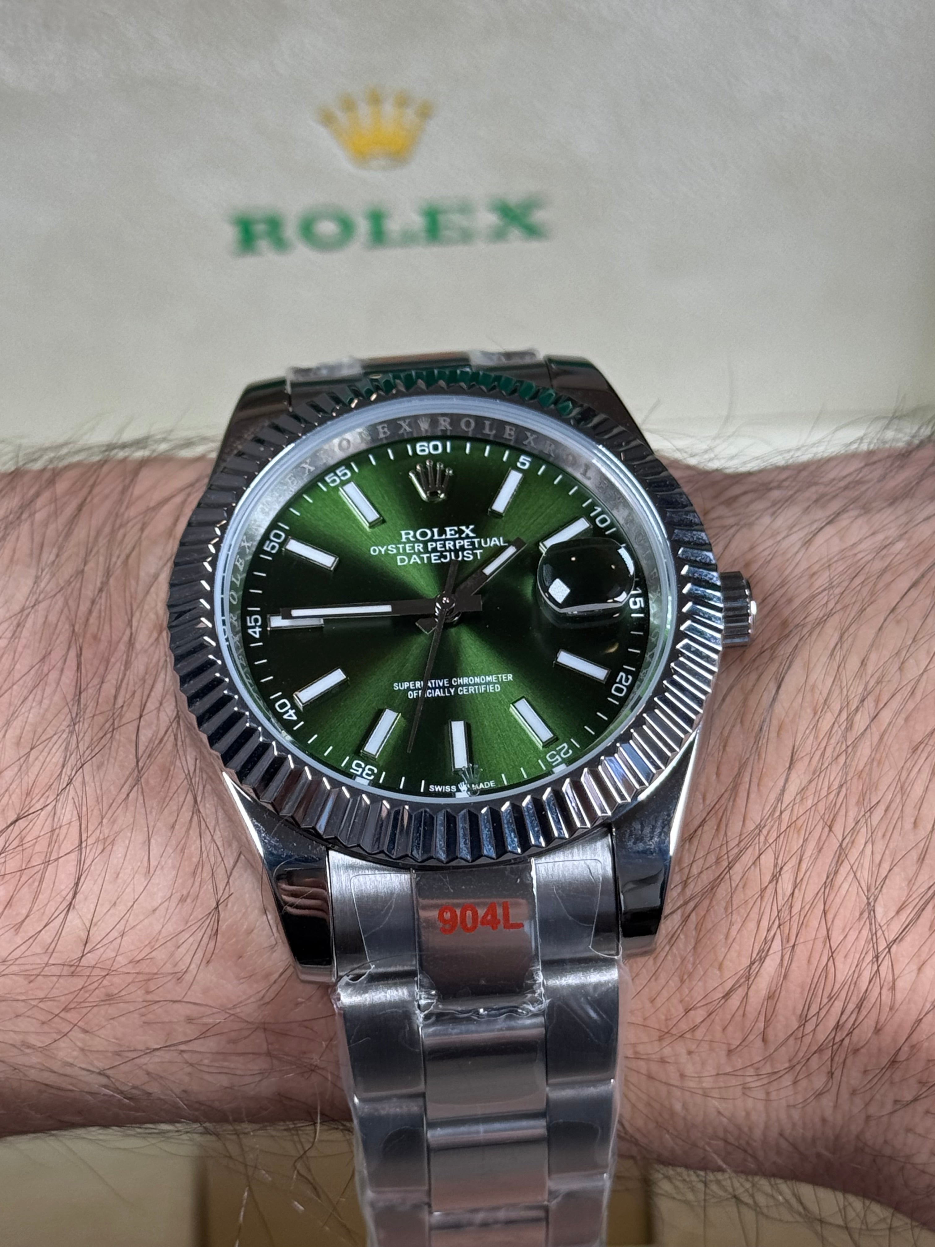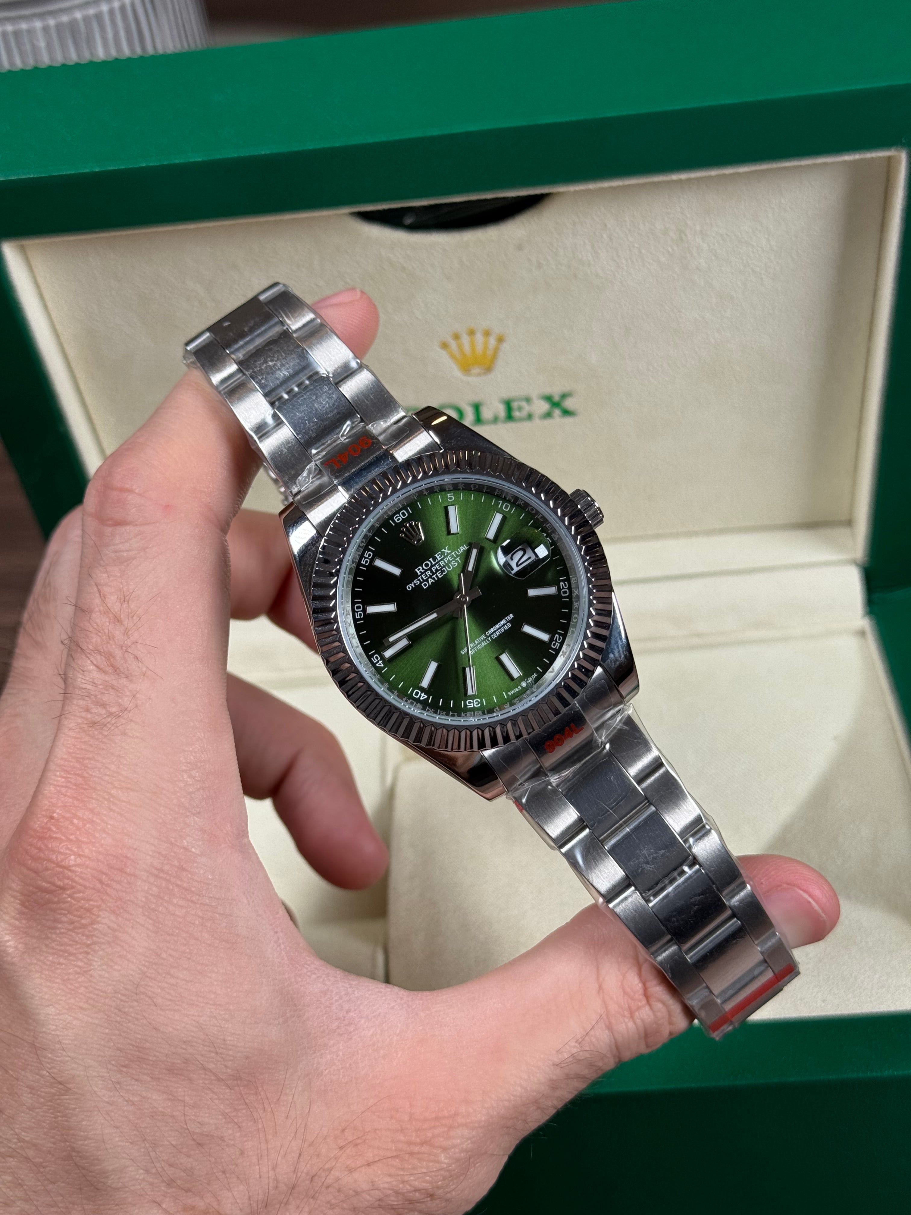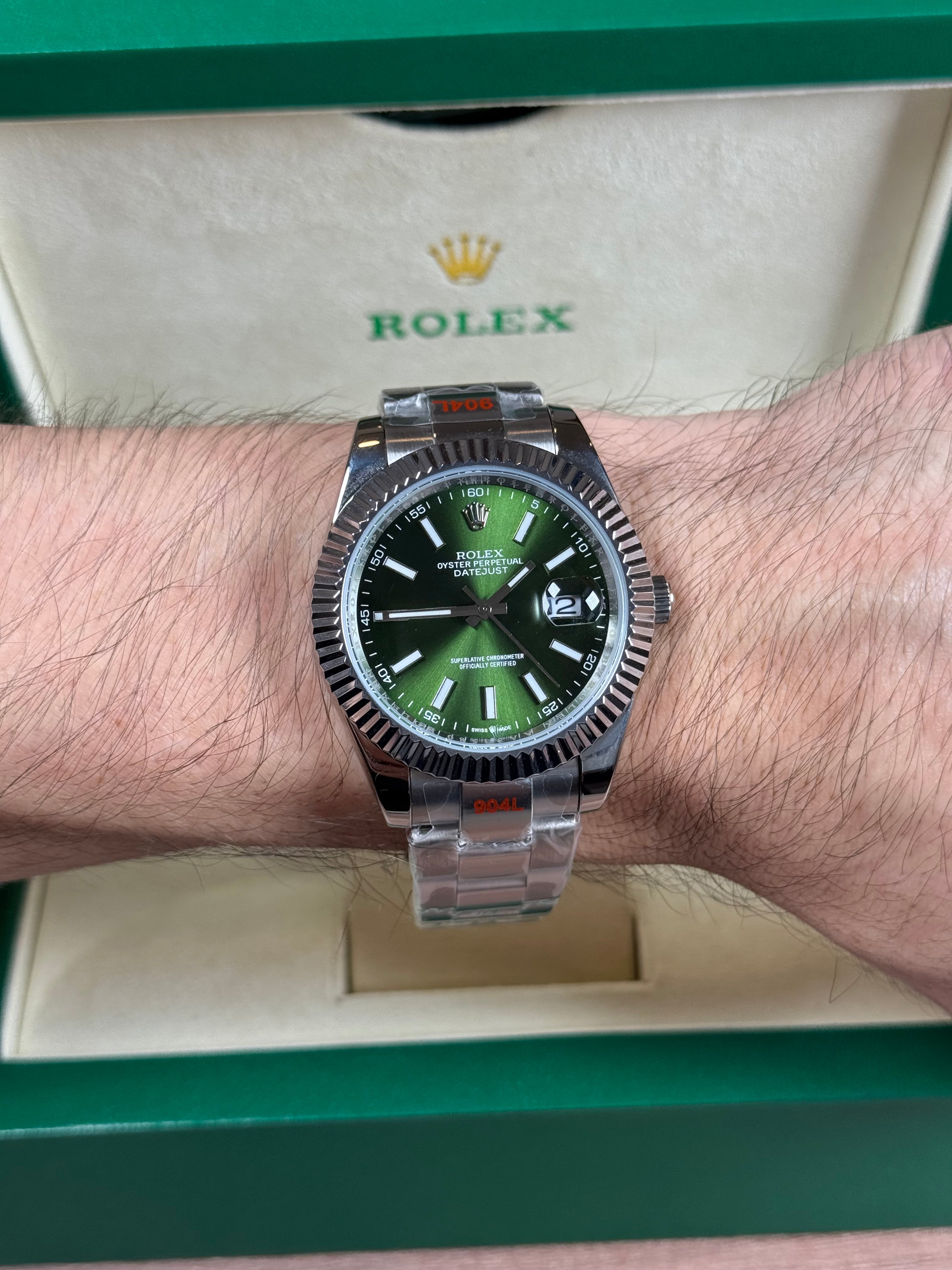 ROLEX DATEJUST PLATEADO - FONDO VERDE BISEL ESTRIADO