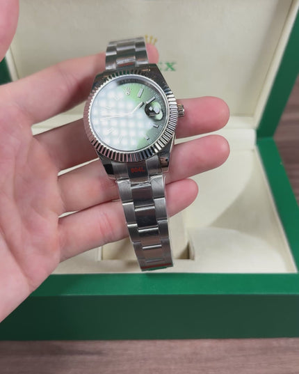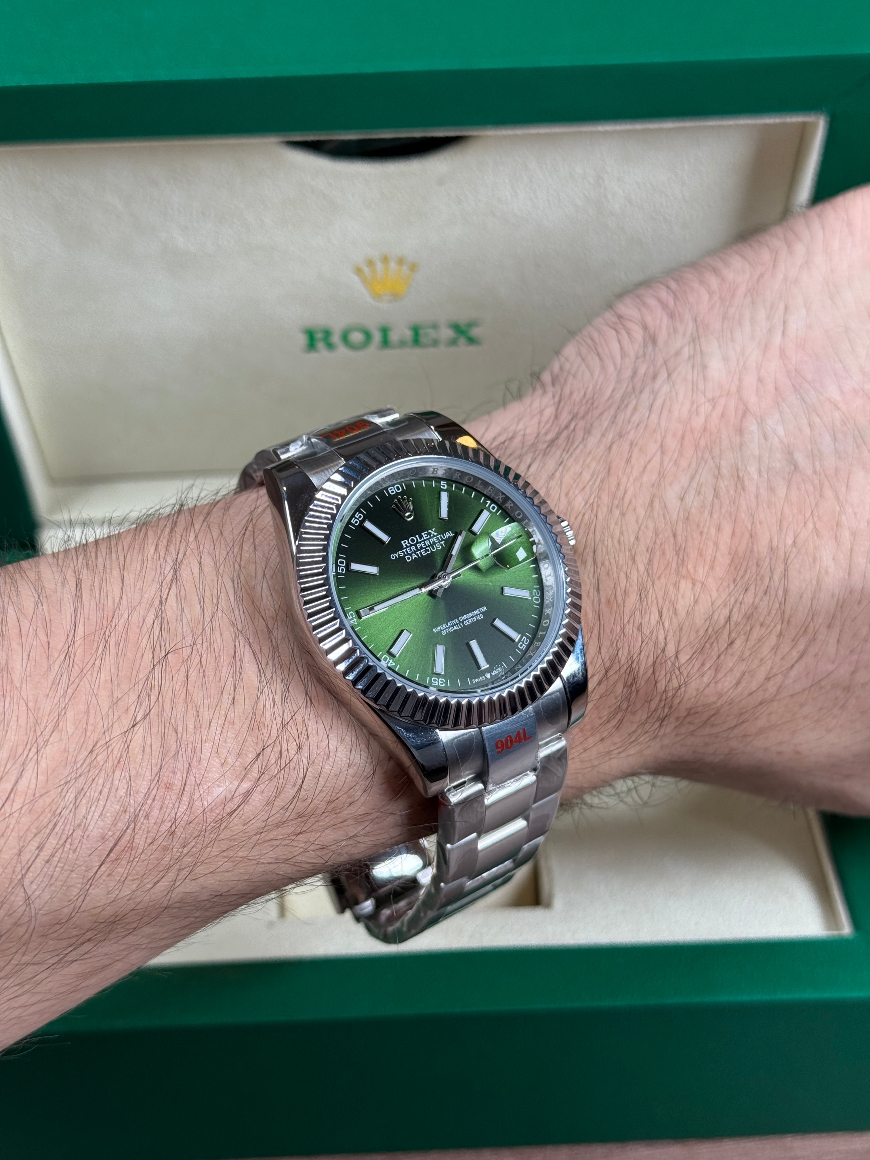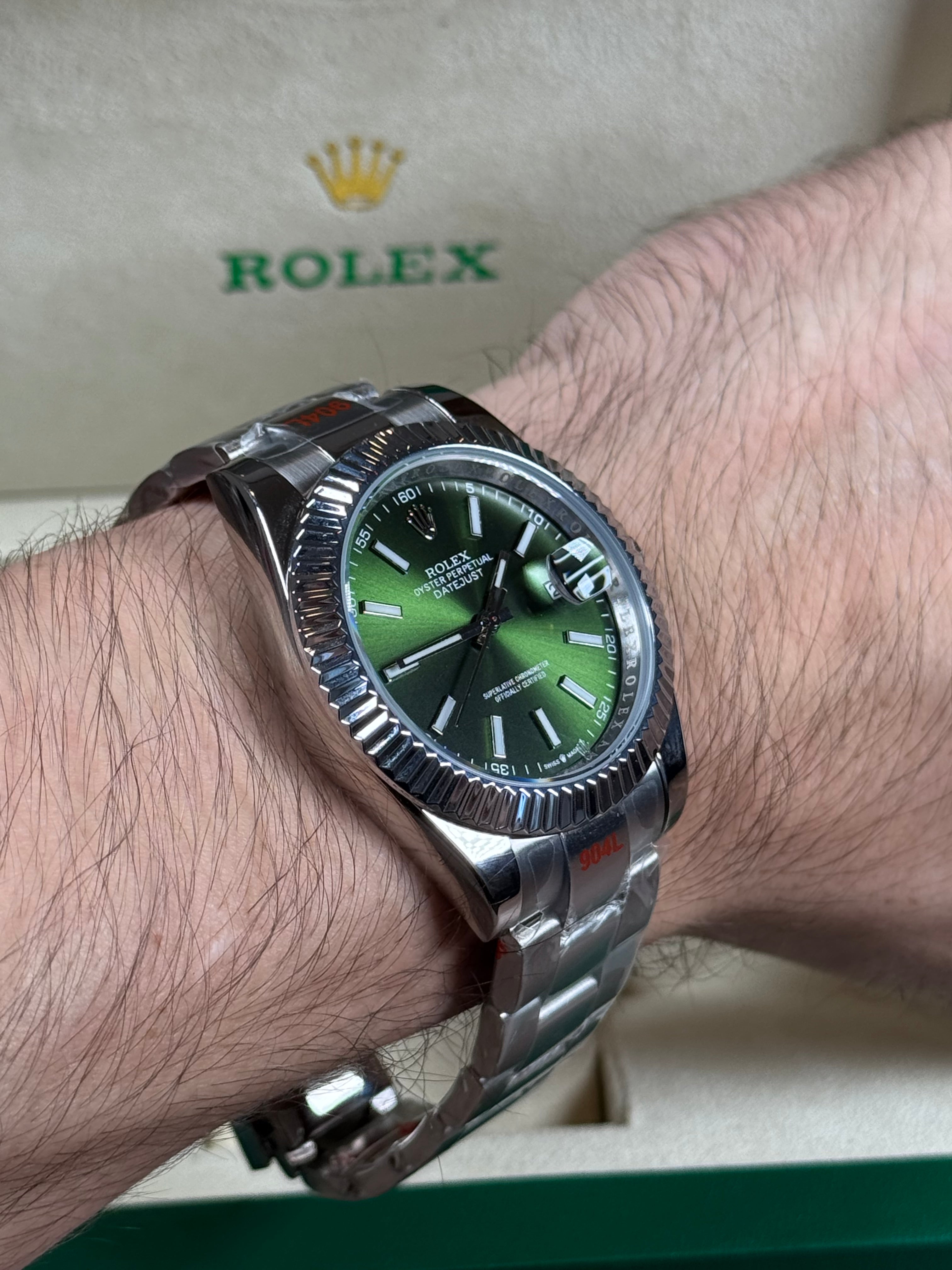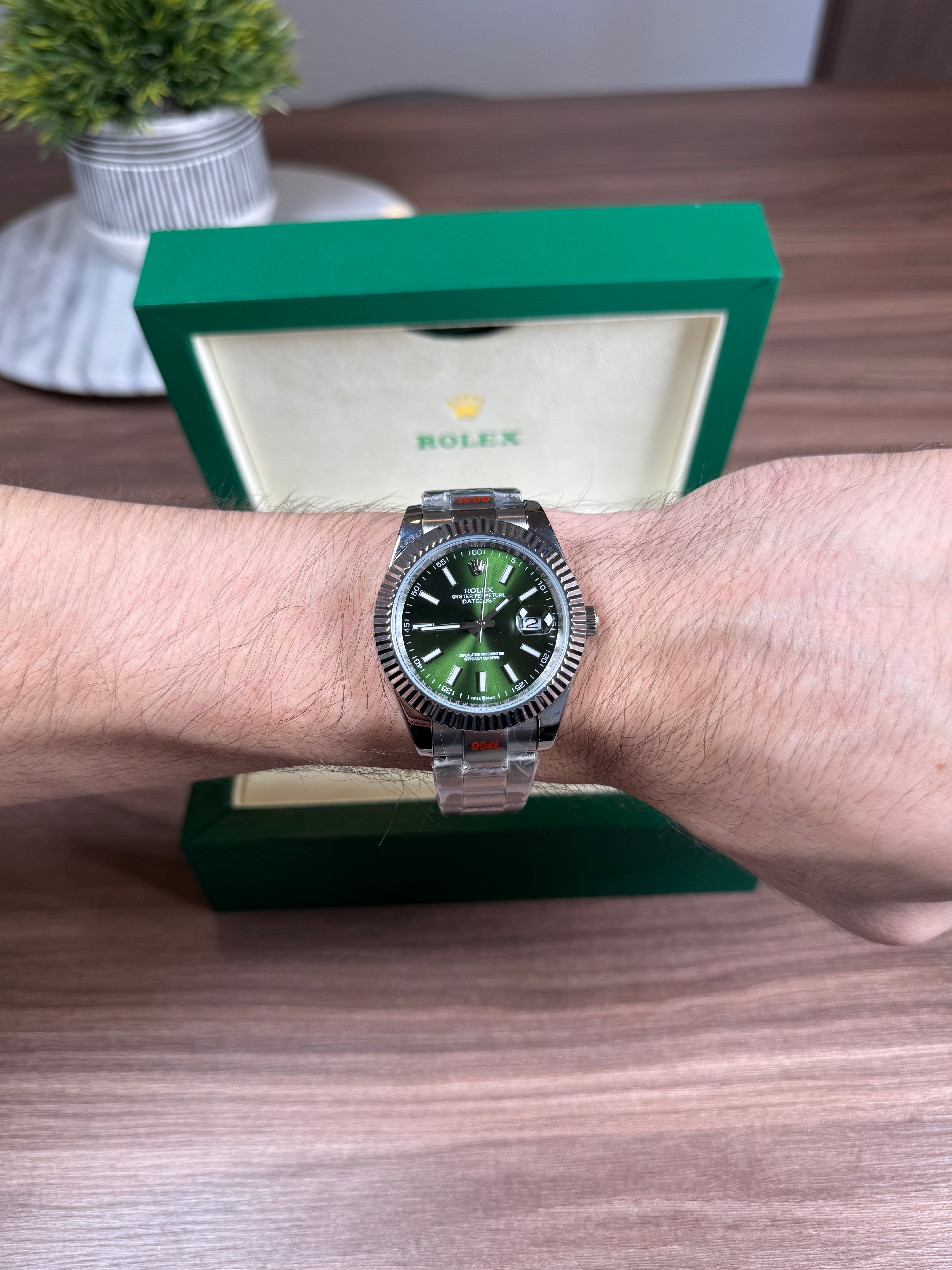 ROLEX DATEJUST PLATEADO - FONDO VERDE BISEL ESTRIADO