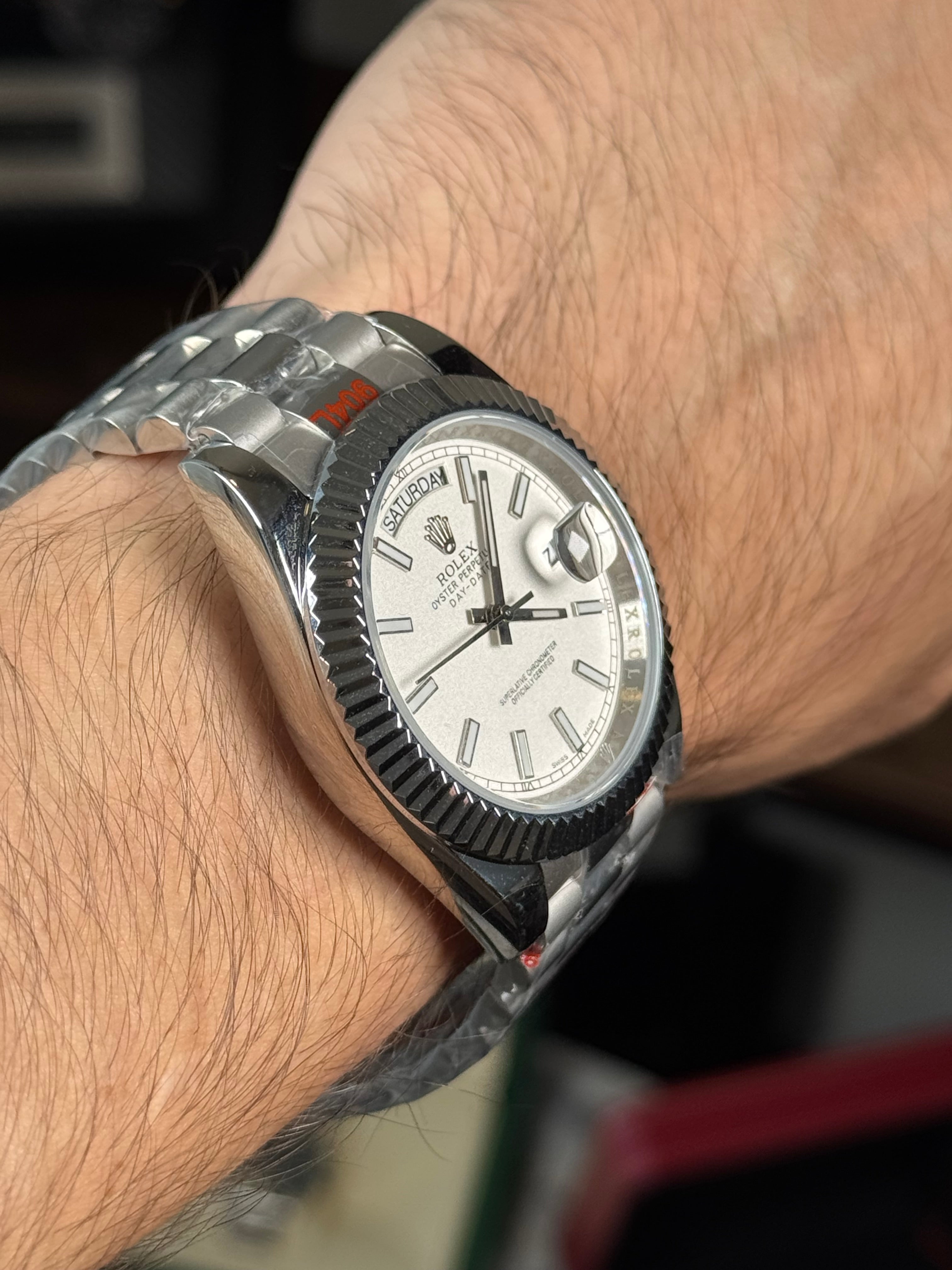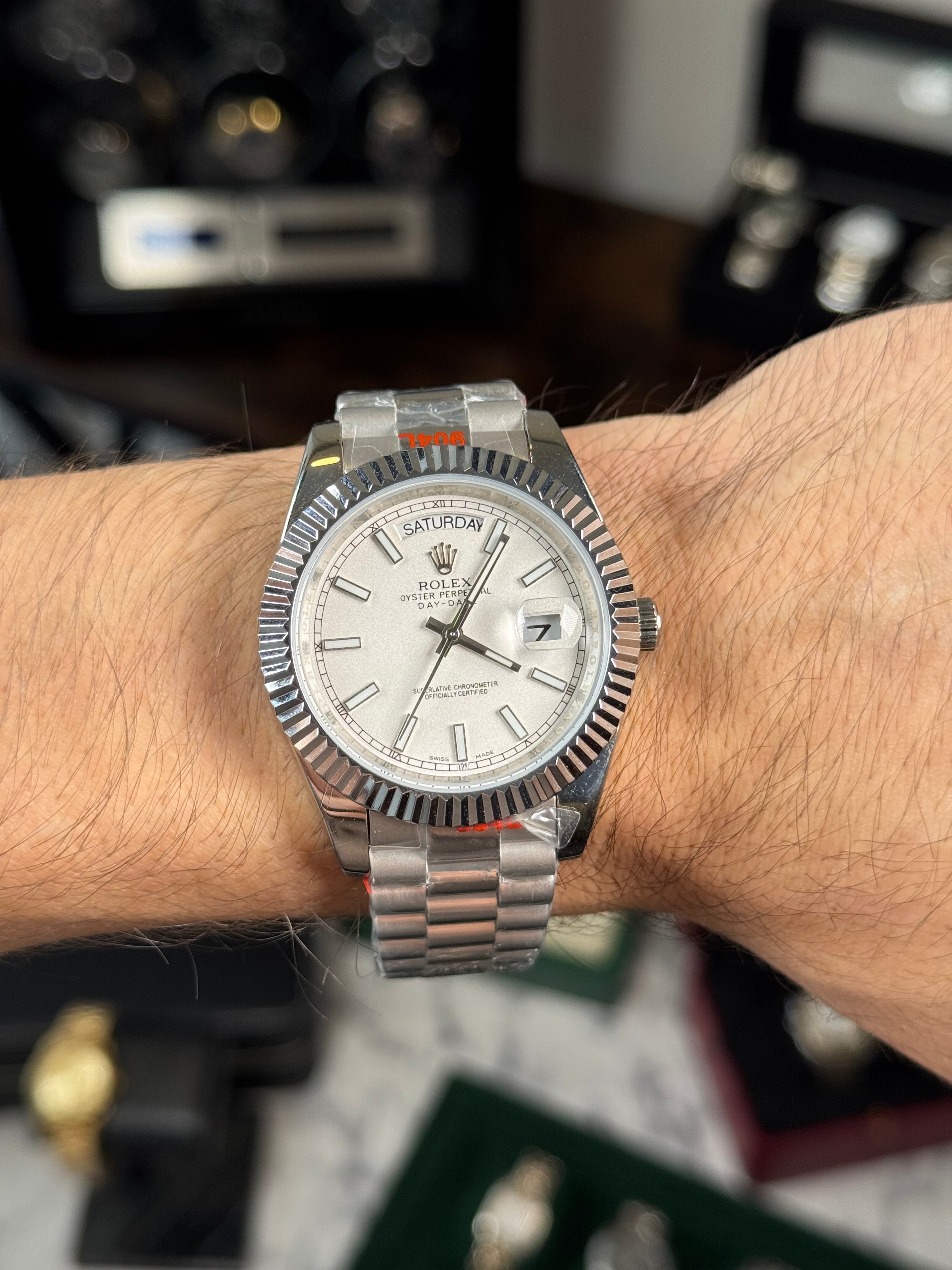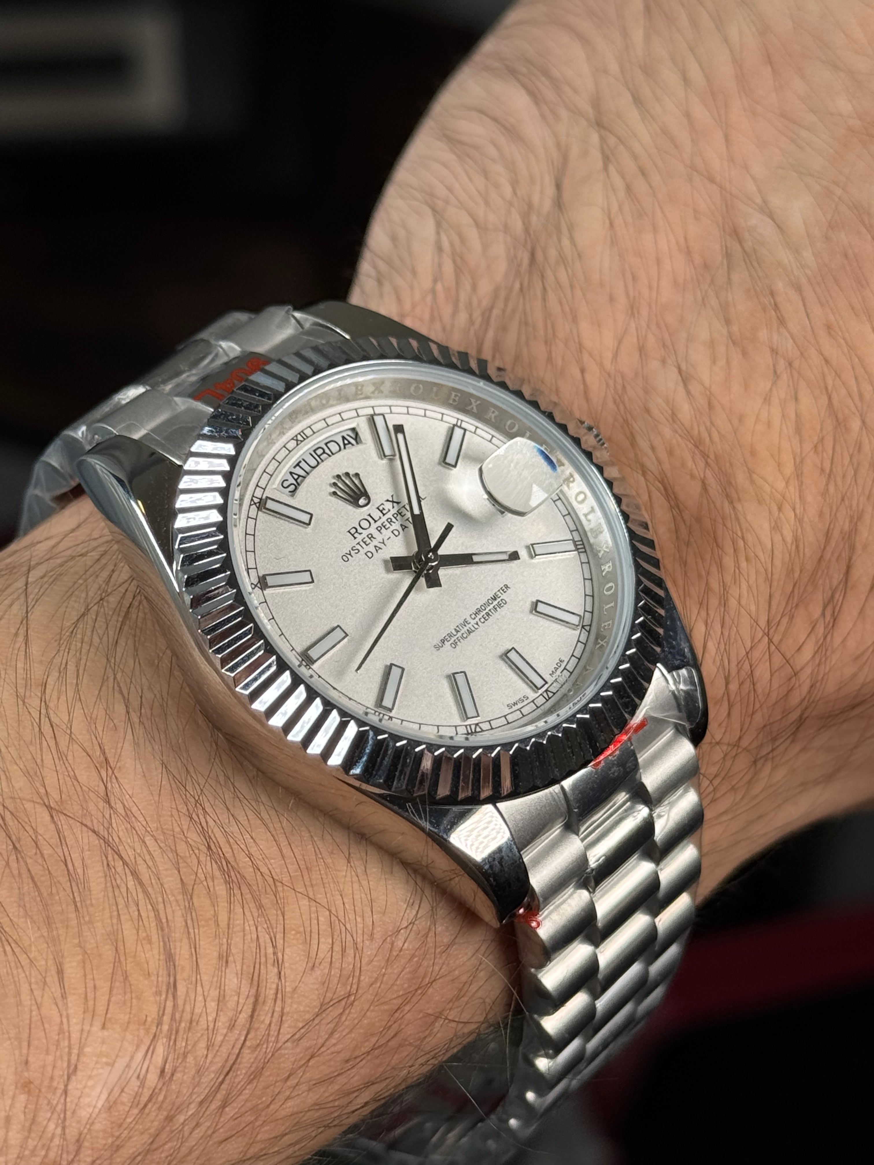 ROLEX DAY DATE PLATEADO - FONDO BLANCO