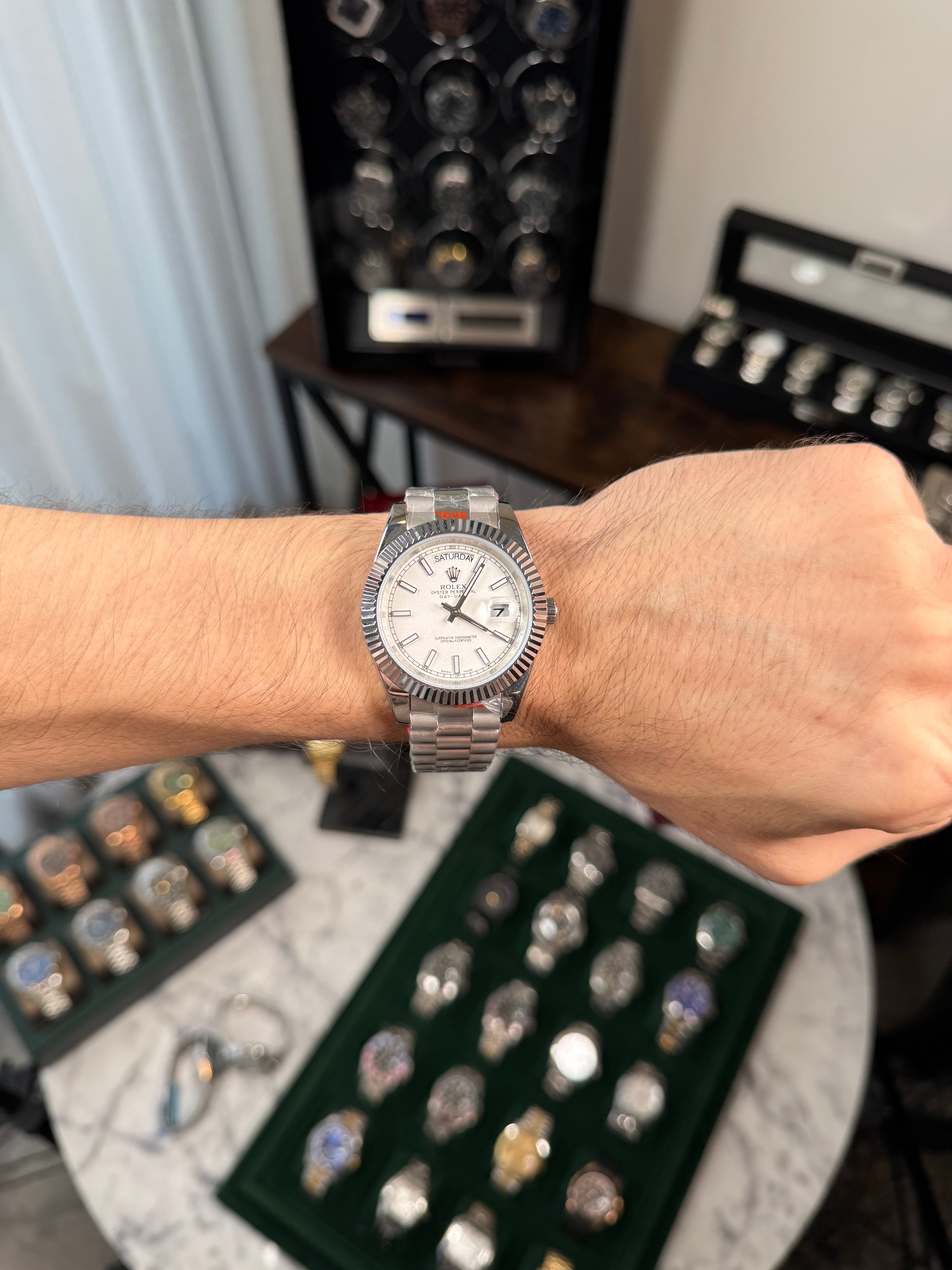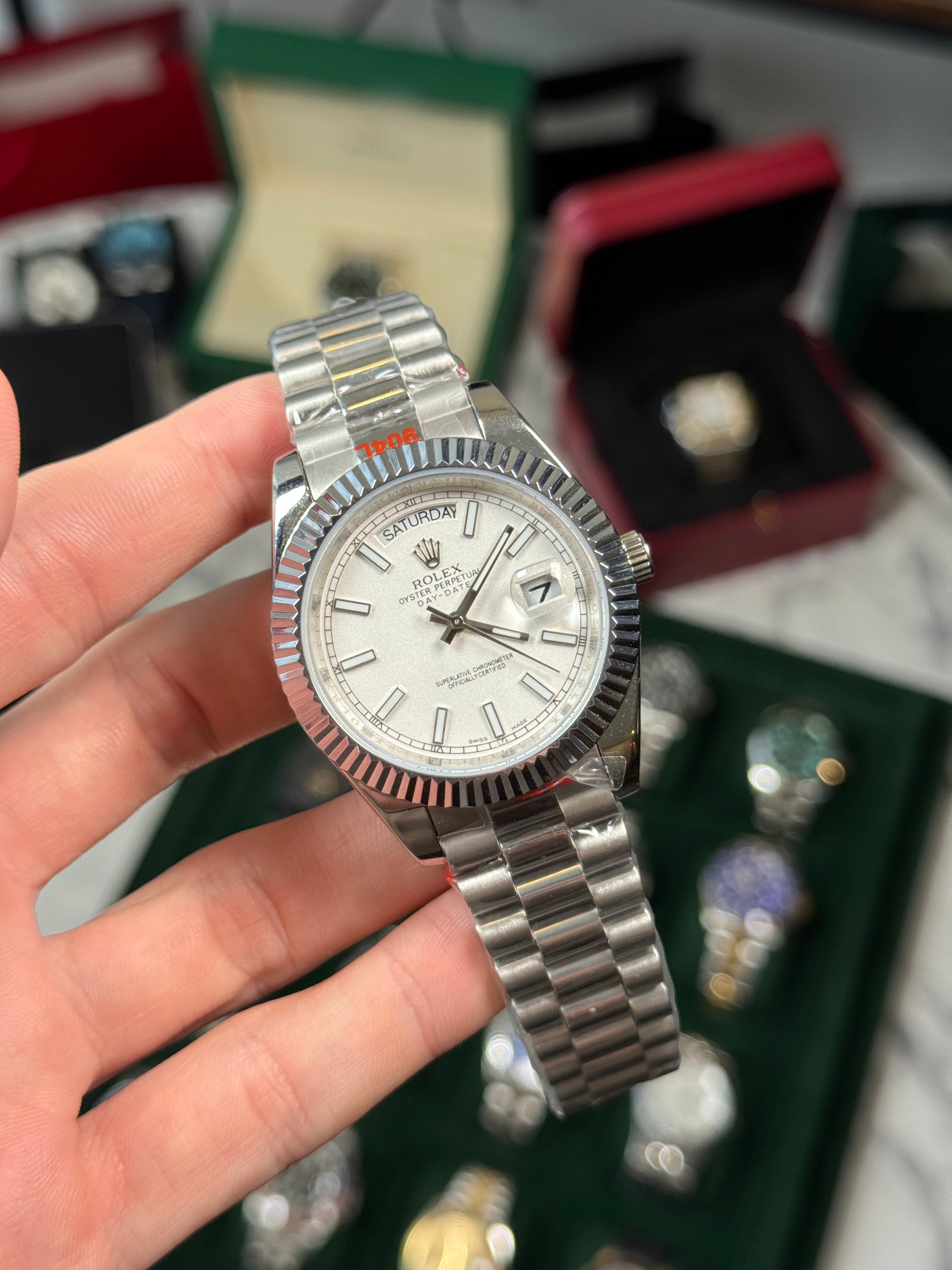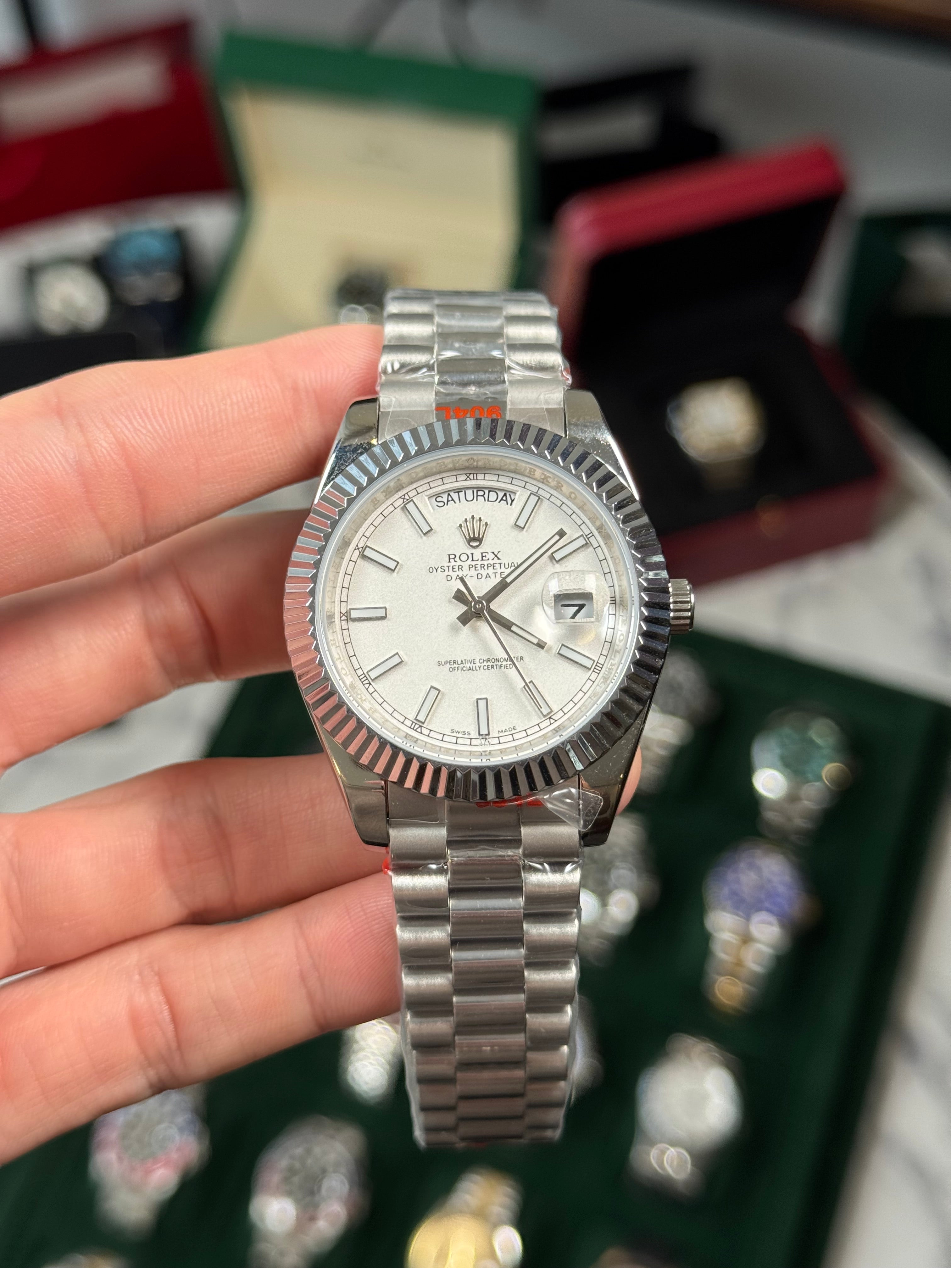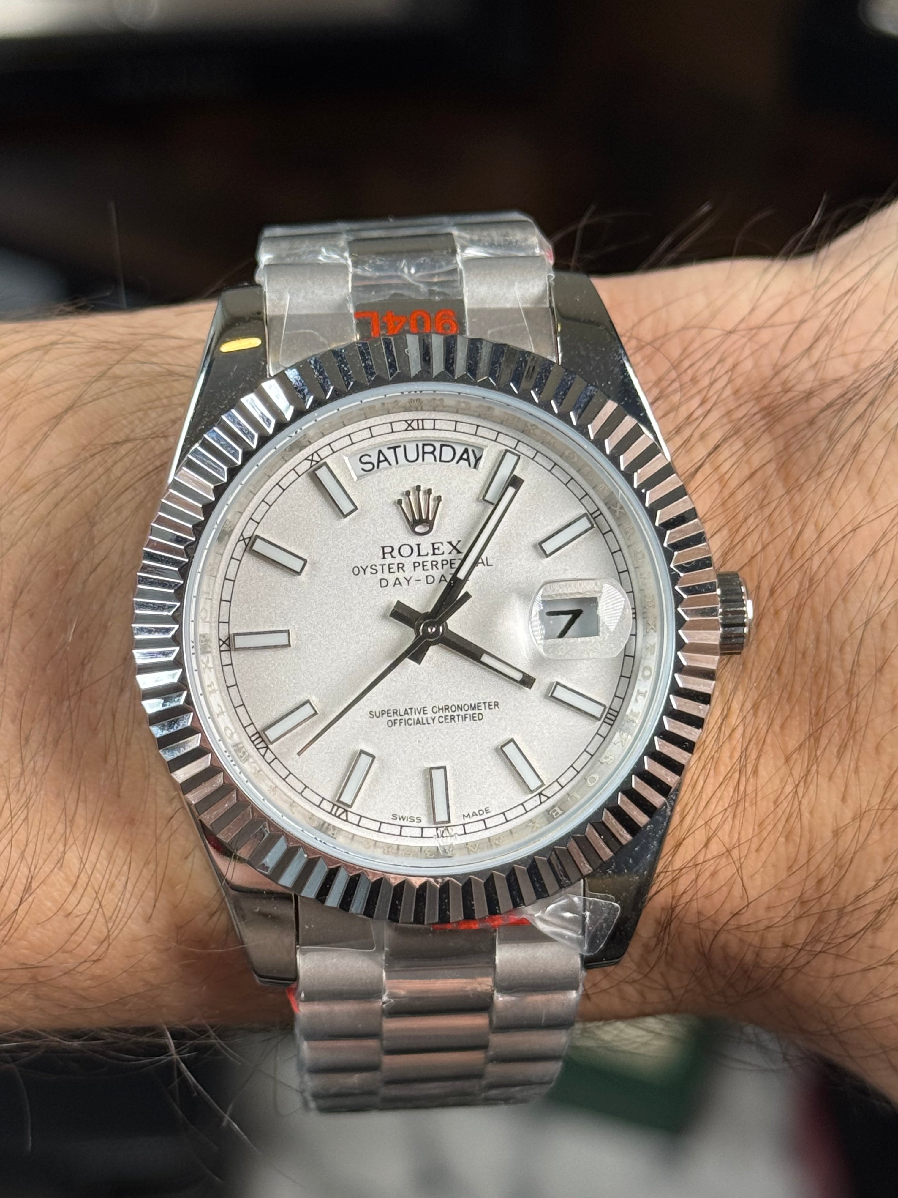 ROLEX DAY DATE PLATEADO - FONDO BLANCO