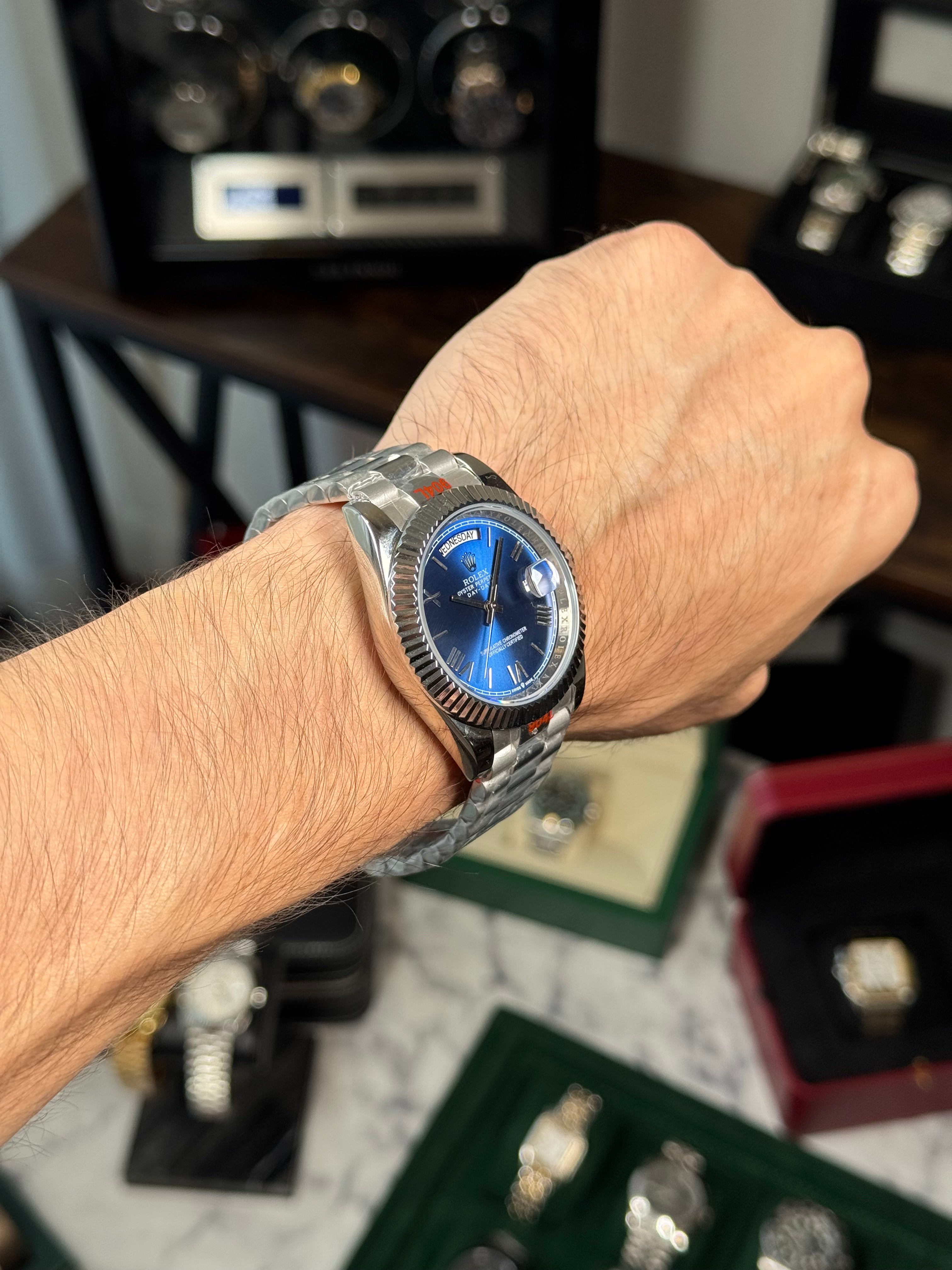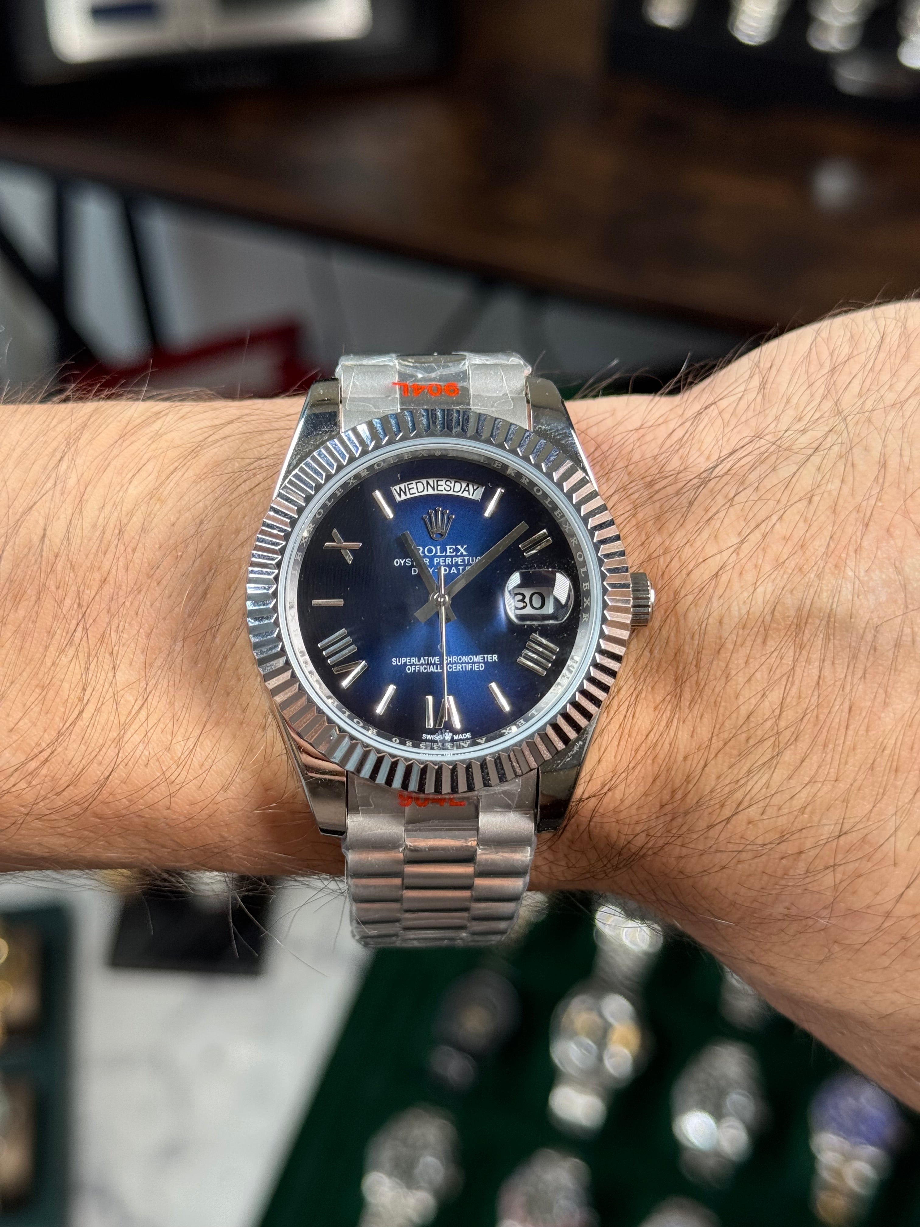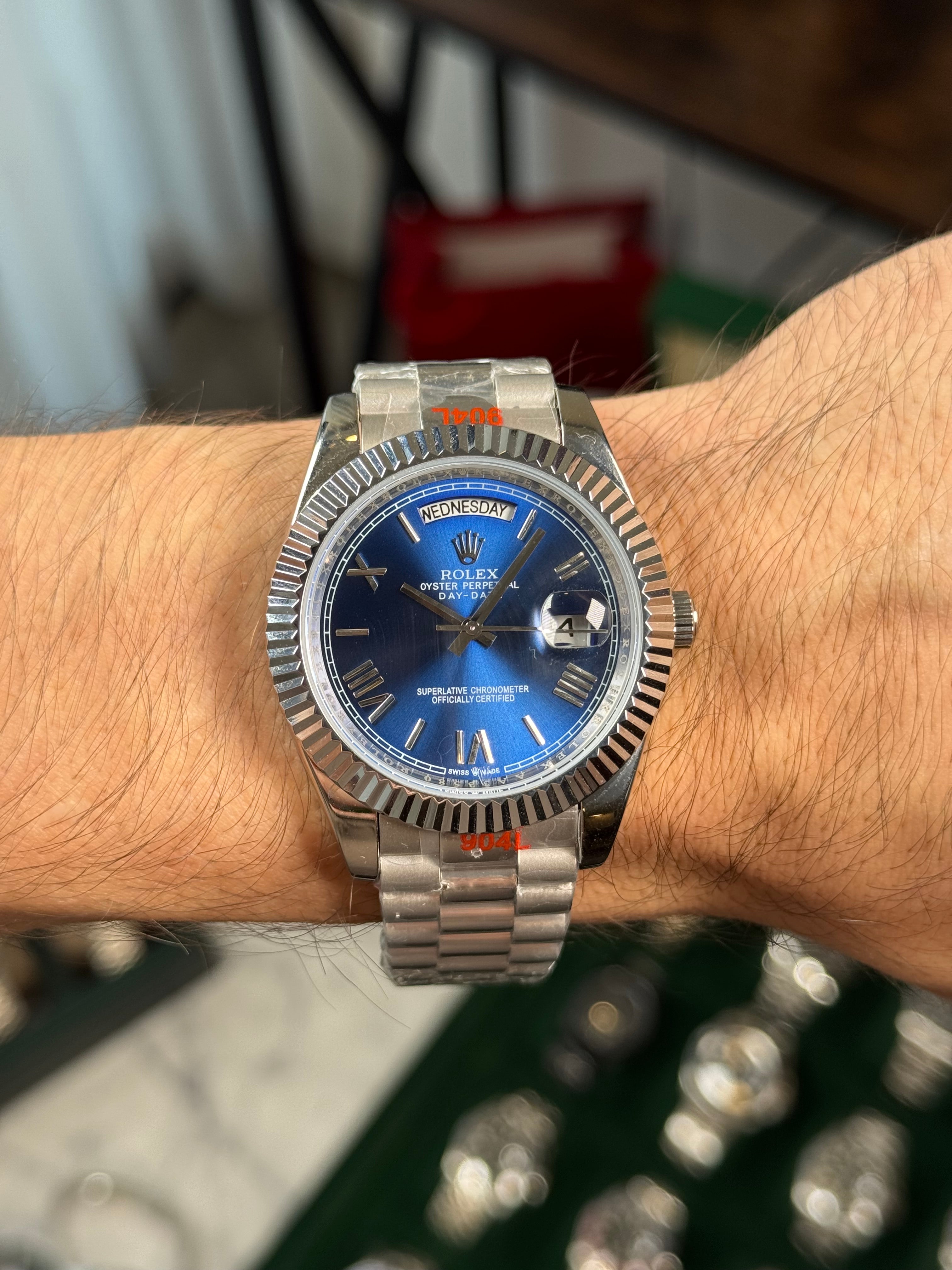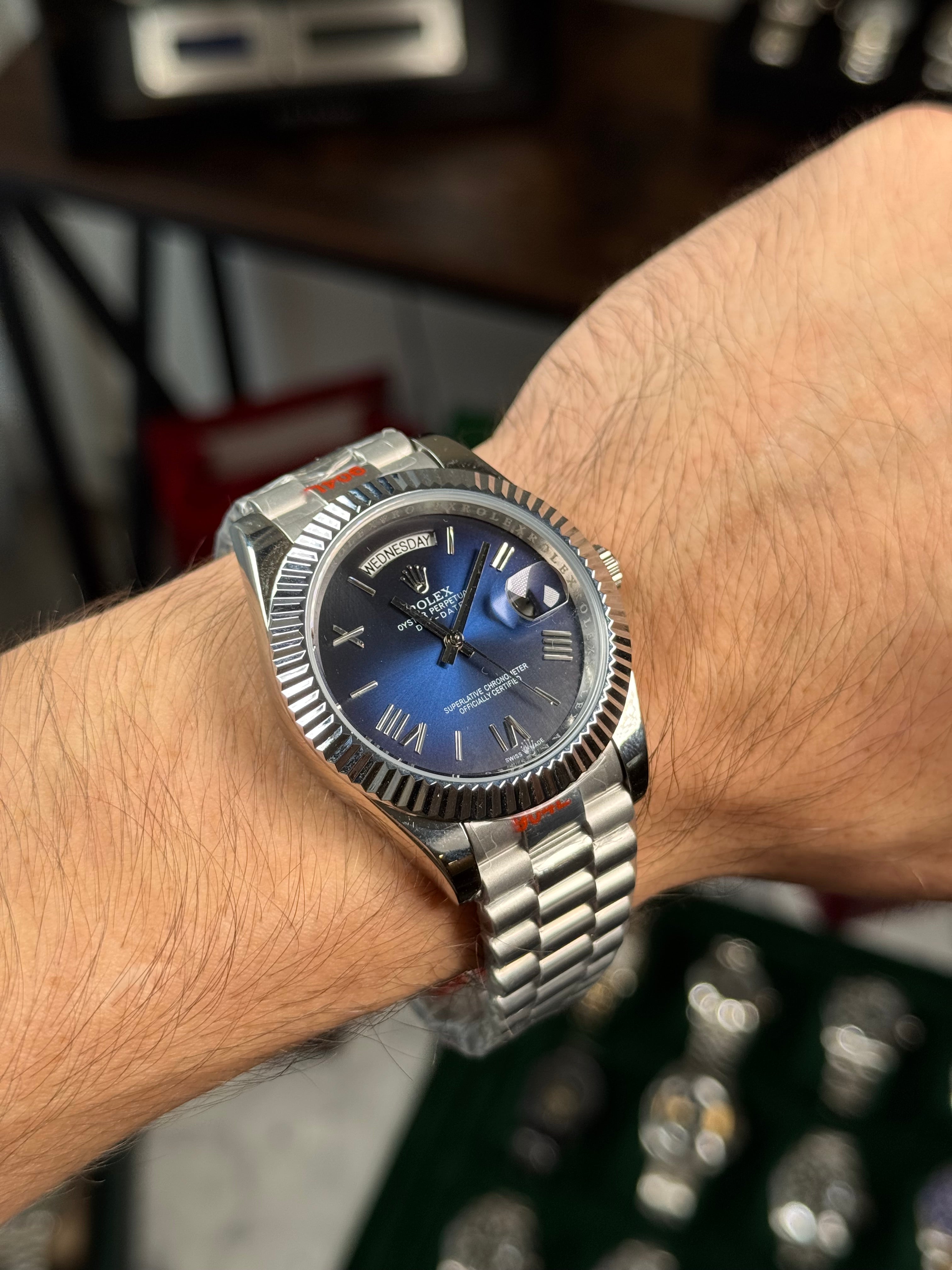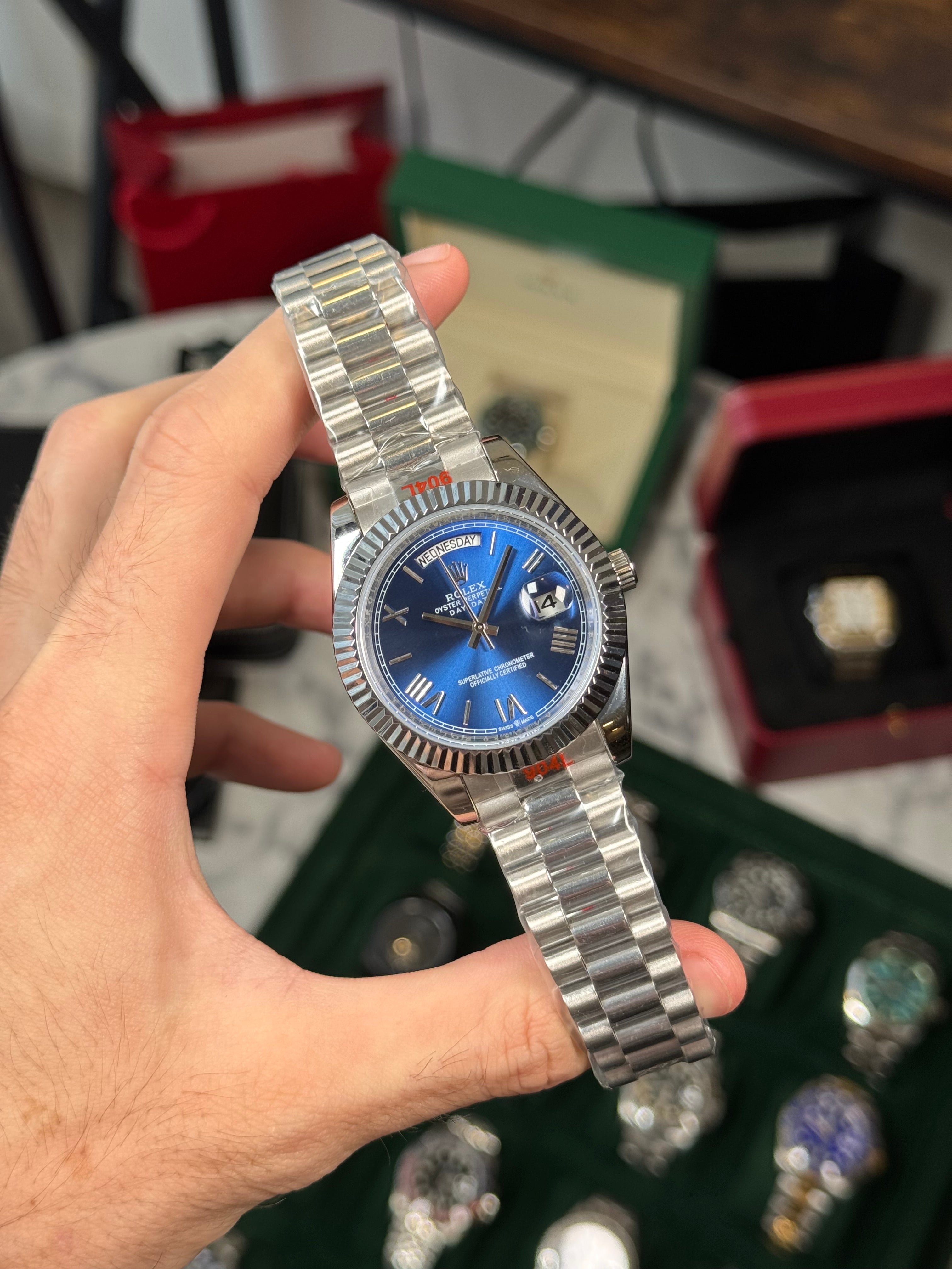 ROLEX DAY DATE PLATEADO - FONDO AZUL