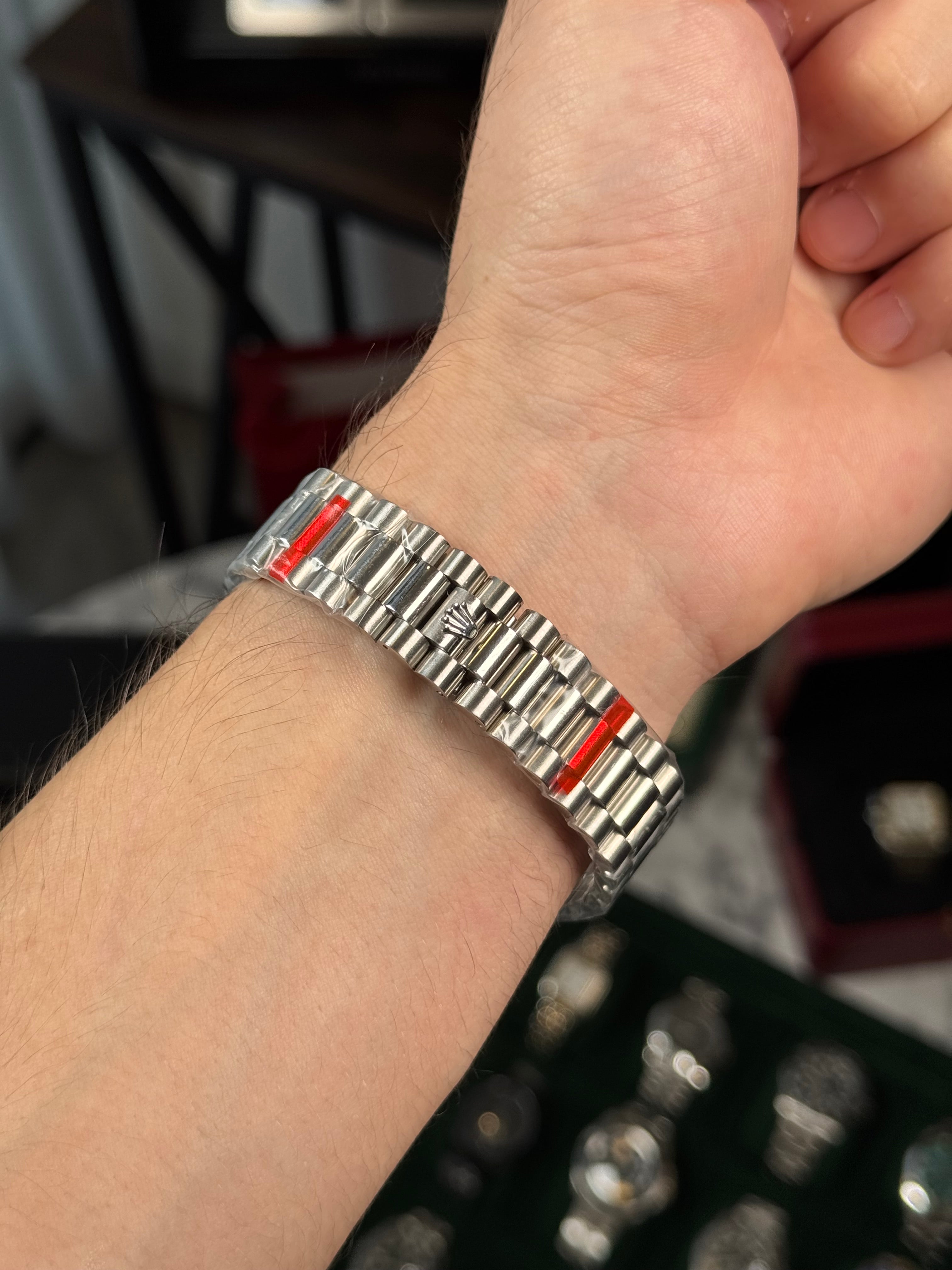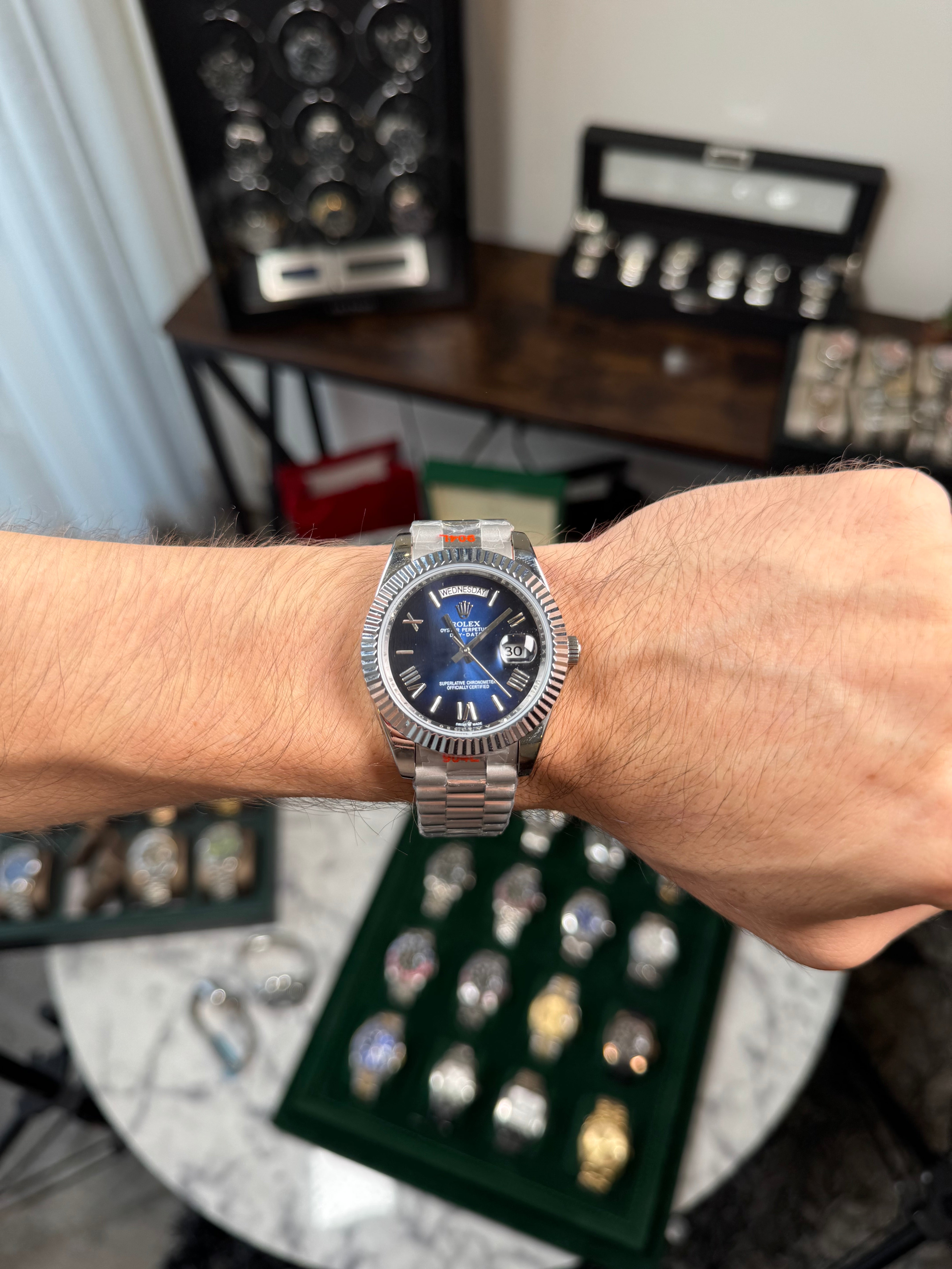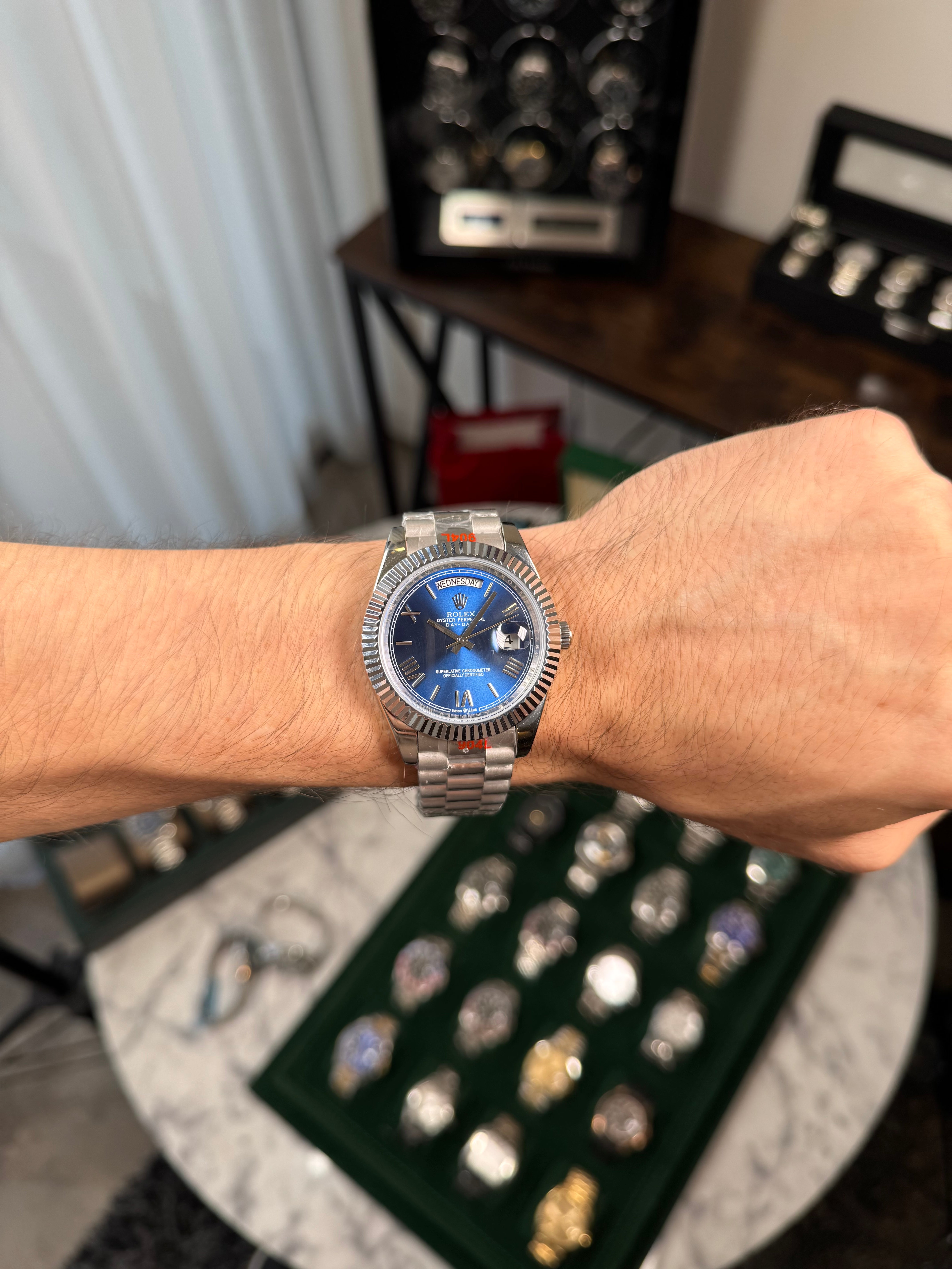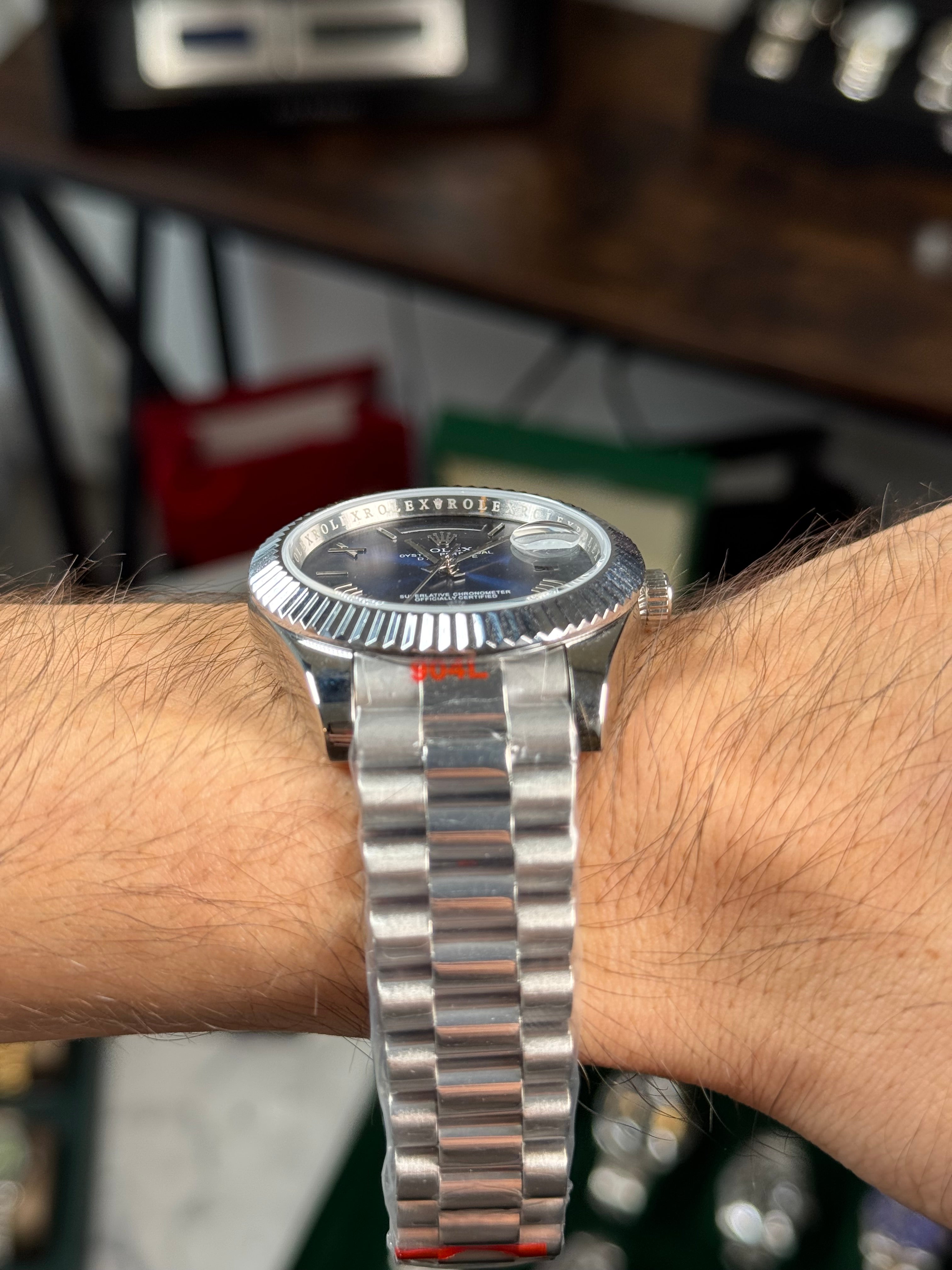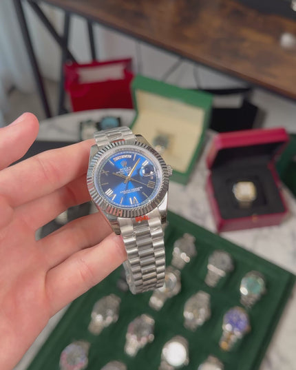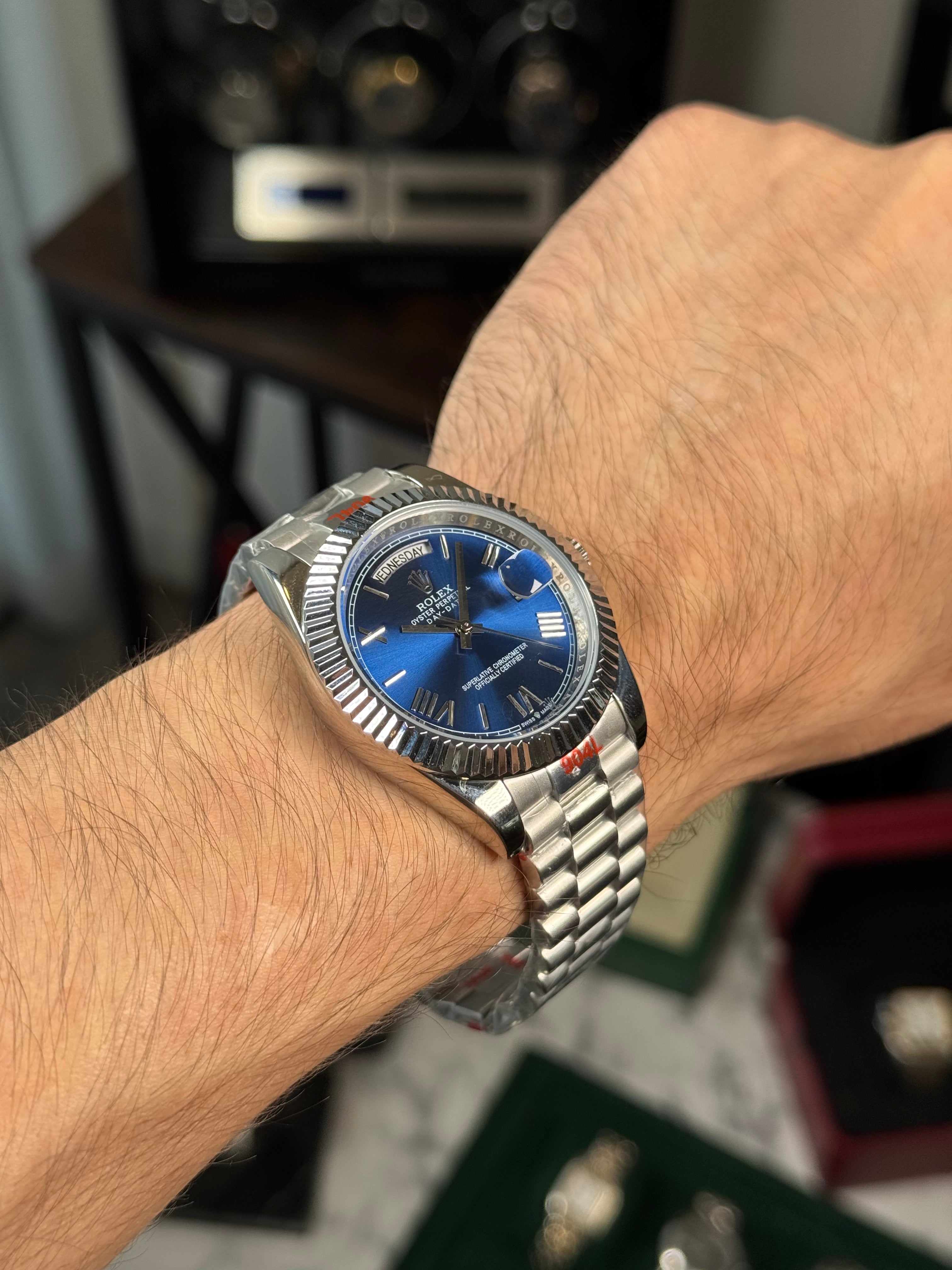 ROLEX DAY DATE PLATEADO - FONDO AZUL