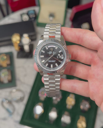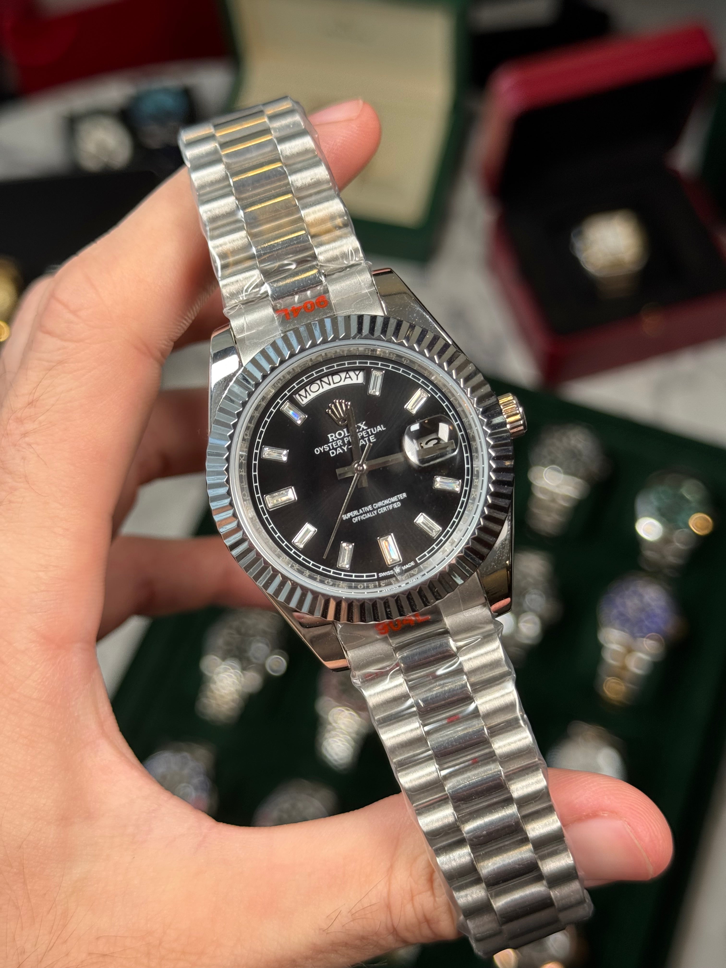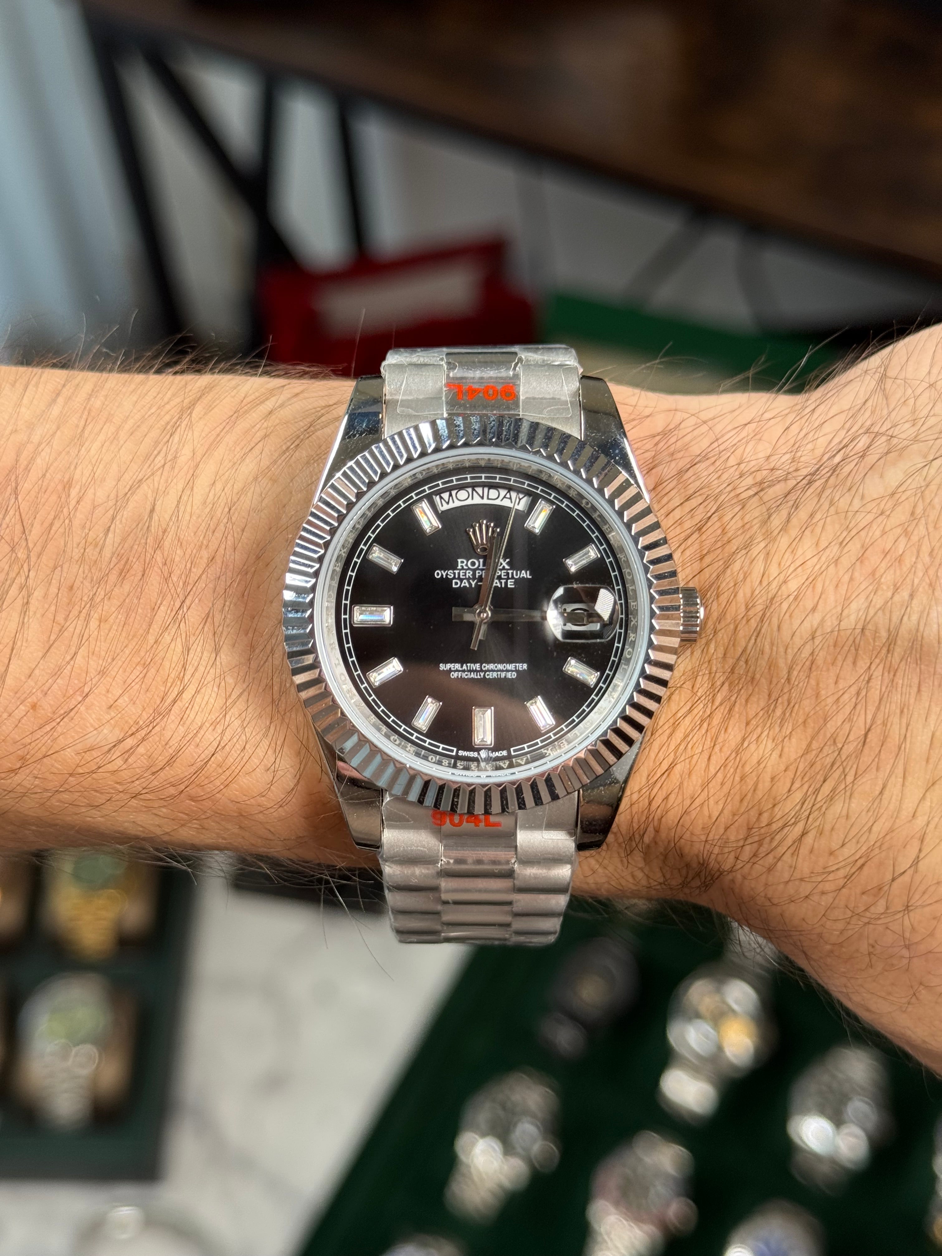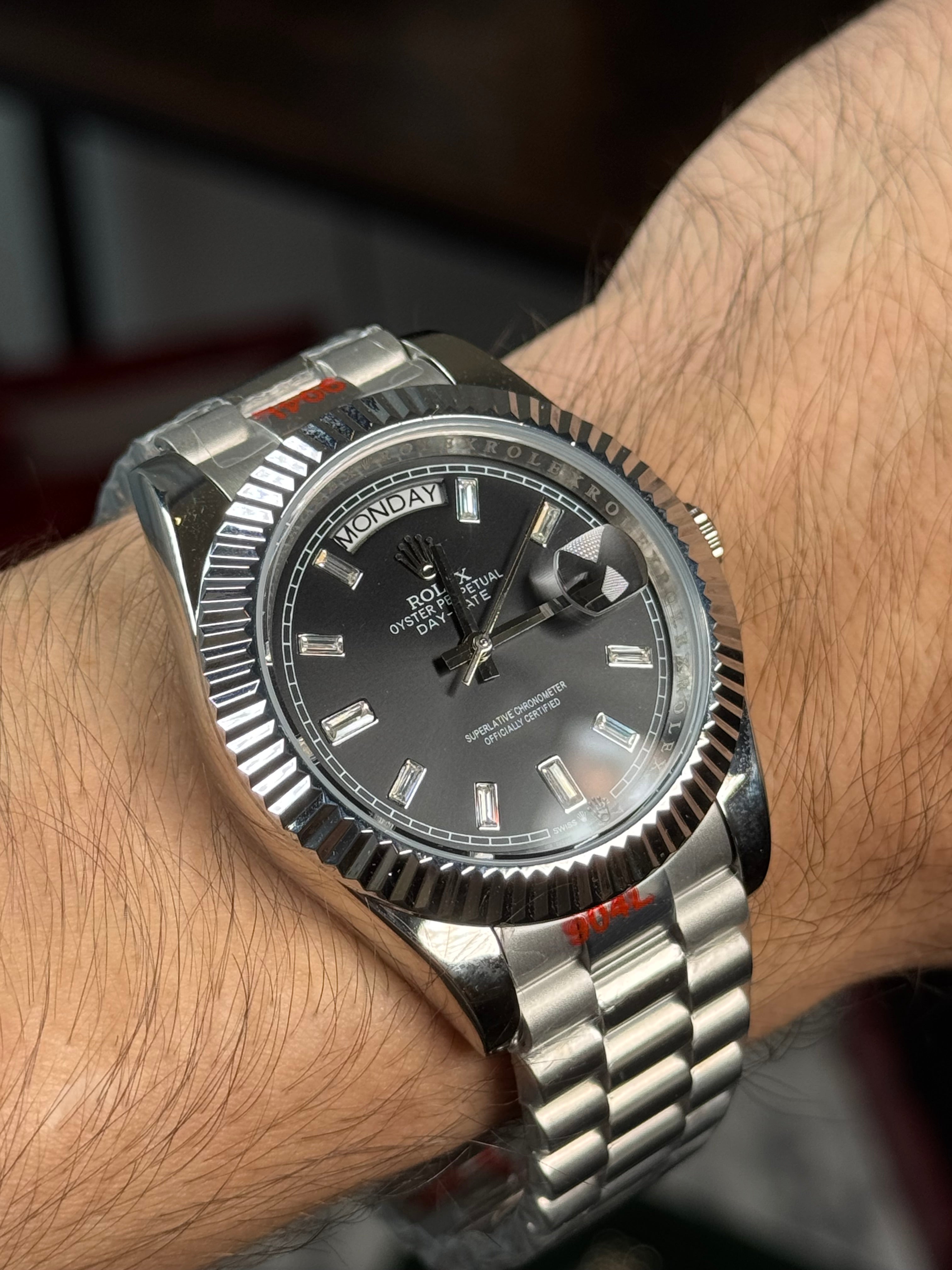 ROLEX DAY DATE PLATEADO - FONDO NEGRO
