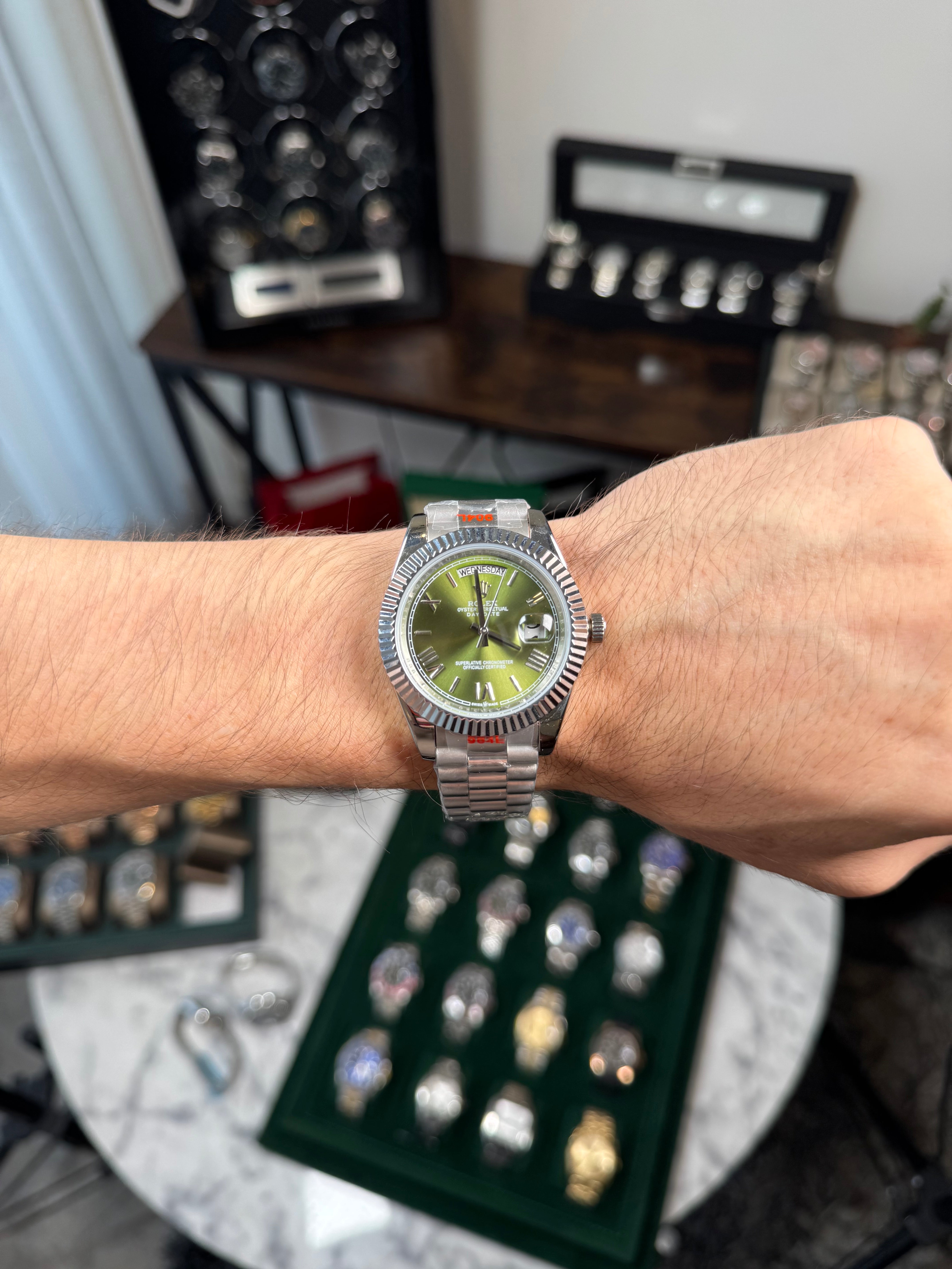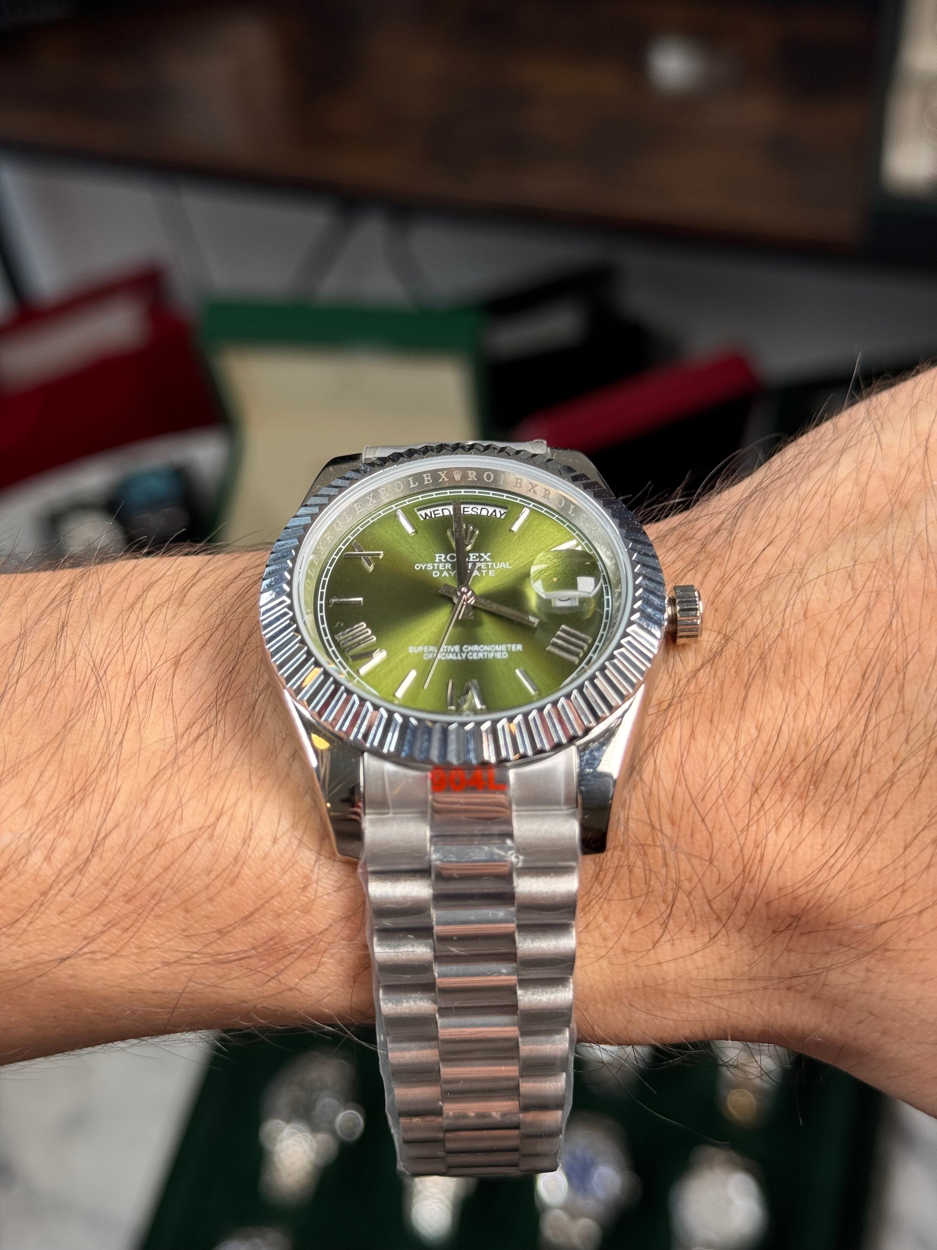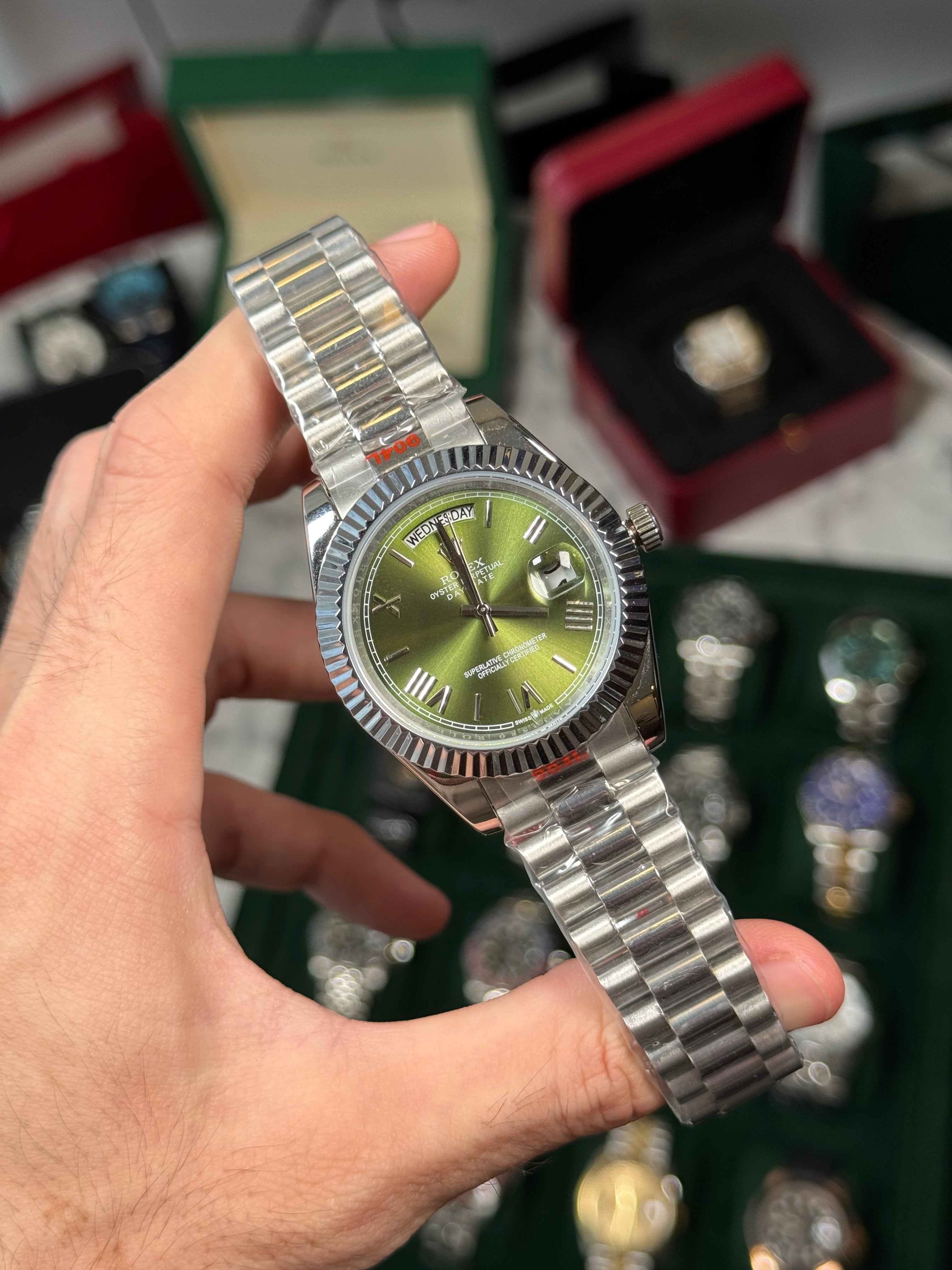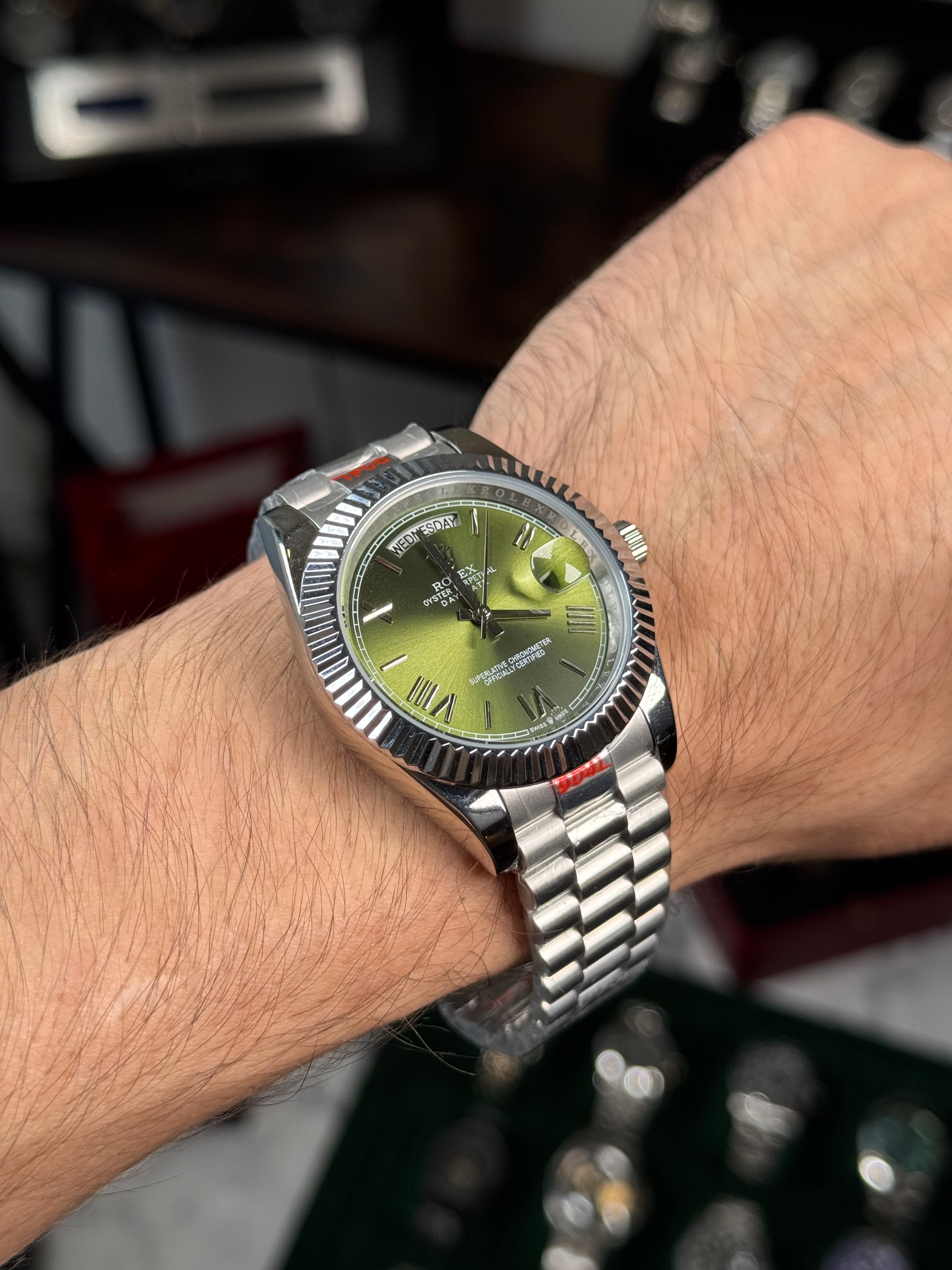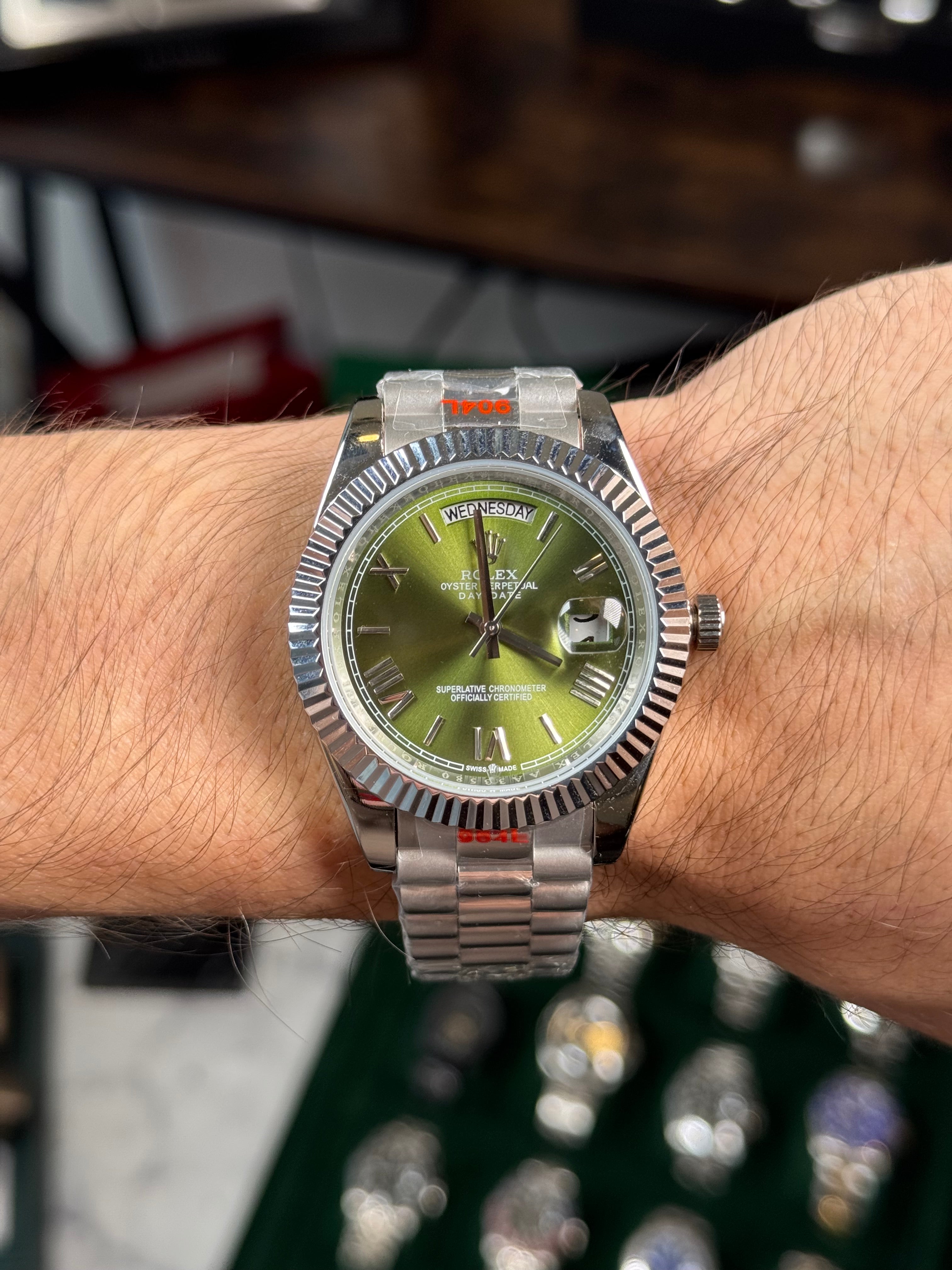 ROLEX DAY DATE PLATEADO - FONDO VERDE