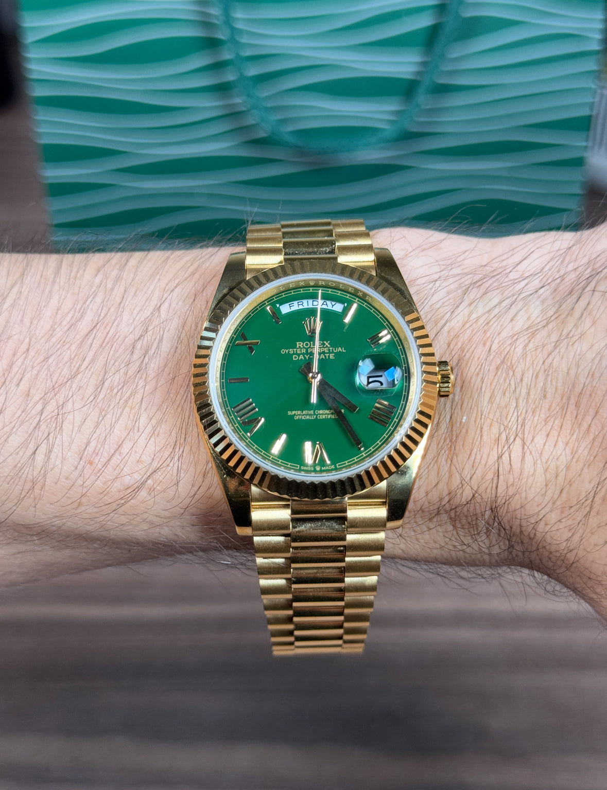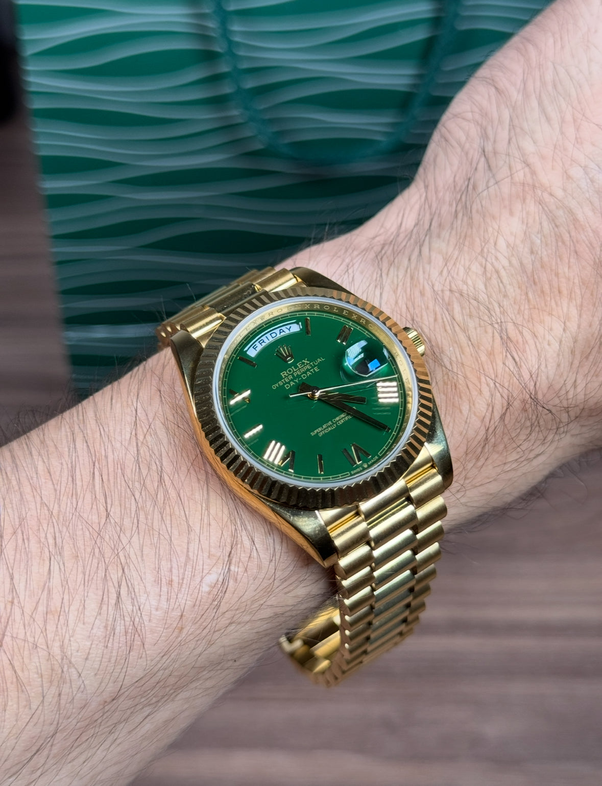 ROLEX DAY-DATE SUIZO - DORADO FONDO VERDE