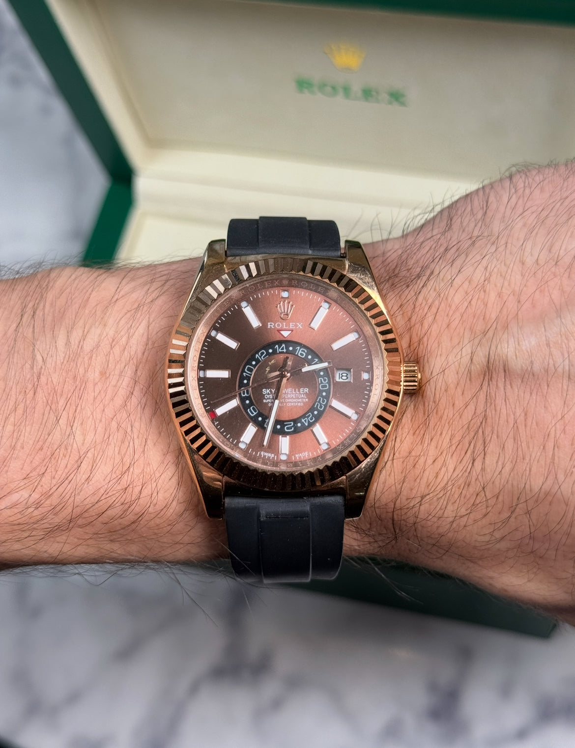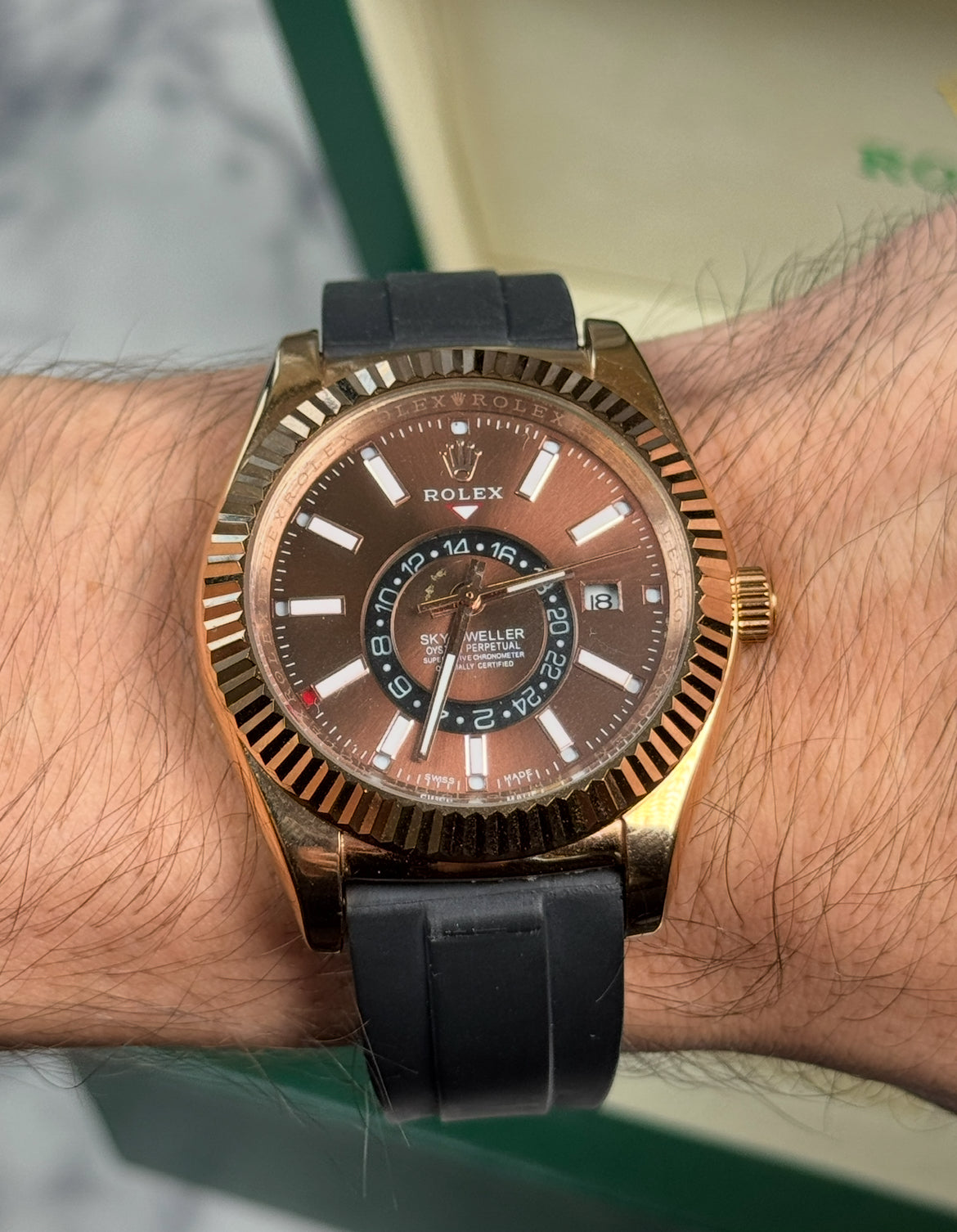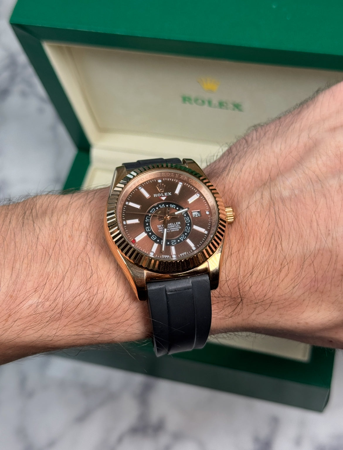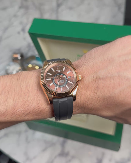 ROLEX SKY-DWELLER CAUCHO - MARRÓN