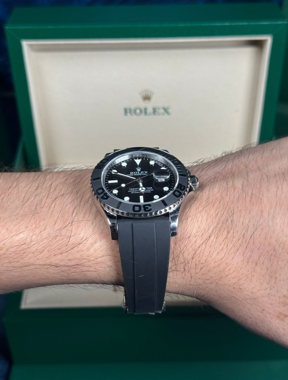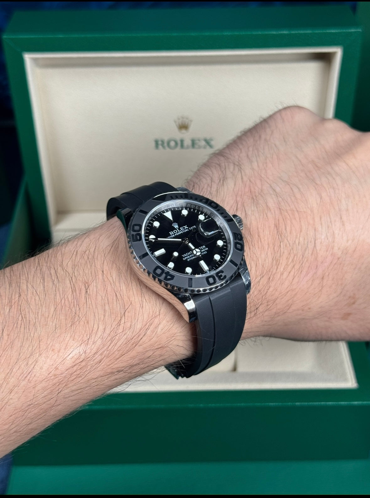 El Rolex Yacht-Master Oysterflex es un reloj de lujo diseñado para aquellos que buscan rendimiento y estilo. Equipado con una caja Oyster de 40 mm, Su bisel giratorio bidireccional de Cerachrom permite un fácil ajuste del tiempo de inmersión, mientras que la correa Oysterflex, con su núcleo metálico y revestimiento de elastómero, ofrece una comodidad inigualable y durabilidad. Impulsado por un movimiento automático. Características Generales:
